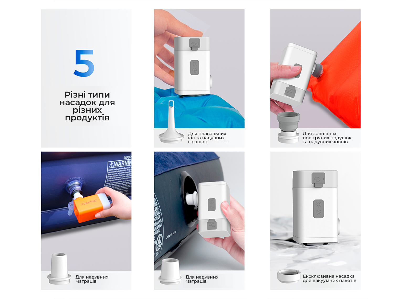- насос-ліхтар 4 в 1 з функцією Power Bank;