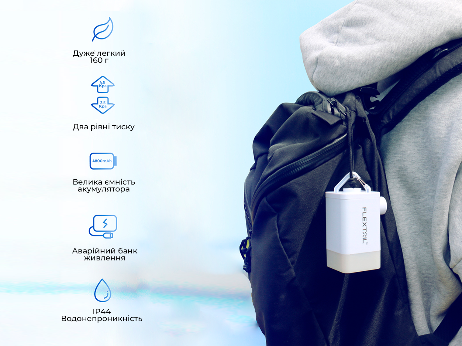 Зробіть своє спорядження для активного відпочинку легшим за допомогою пристрою Flextail Max Pump 2 Plus, який виконує функції 4 різних приладів: