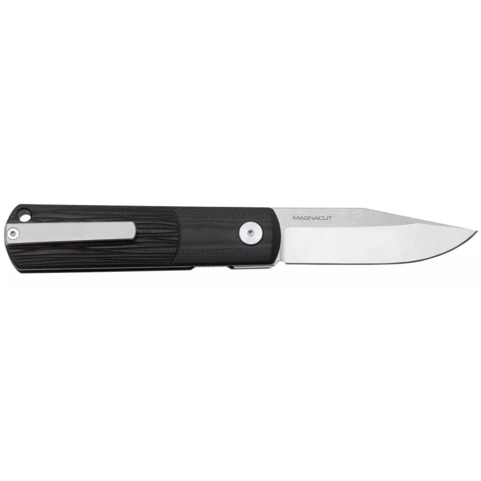 Сучасна інтерпретація від Boker Solingen зберігає всі ключові елементи класичного дизайну, водночас осучаснюючи його. Клинок виготовлений з преміальної, порошкової сталі CPM MagnaCut, що приводиться в робоче положення за допомогою невеликого фліпера, а система шарикопідшипників забезпечує плавне відкривання. Замок Liner Lock надійно фіксує клинок у відкритому положенні. Руків’я виконане зі склотекстоліту G10, що забезпечує впевнений хват завдяки текстурованій поверхні. На кінці розміщена кліпса та отвір для темляка чи стильного ремінця.