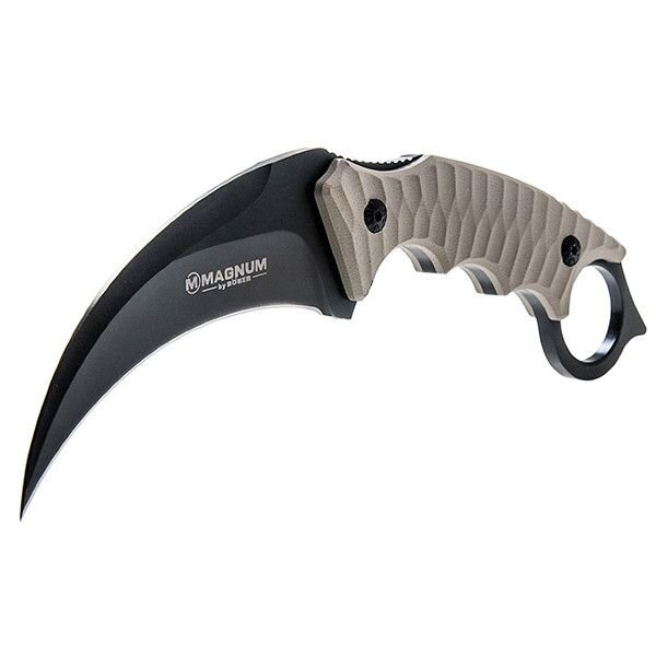 Керамбіт Бокер Магнум Спайк Керамбіт - ніж з зігнутим фіксованим клинком і заточуванням по увігнутій стороні, службовець для нанесення січних ударів. Клинок виготовлений з нержавіючої сталі 440А. Рукоять з текстурованими накладками із зносостійкого склотекстоліту G-10 має зручні подпальцевие виїмки для більш надійного хвата.