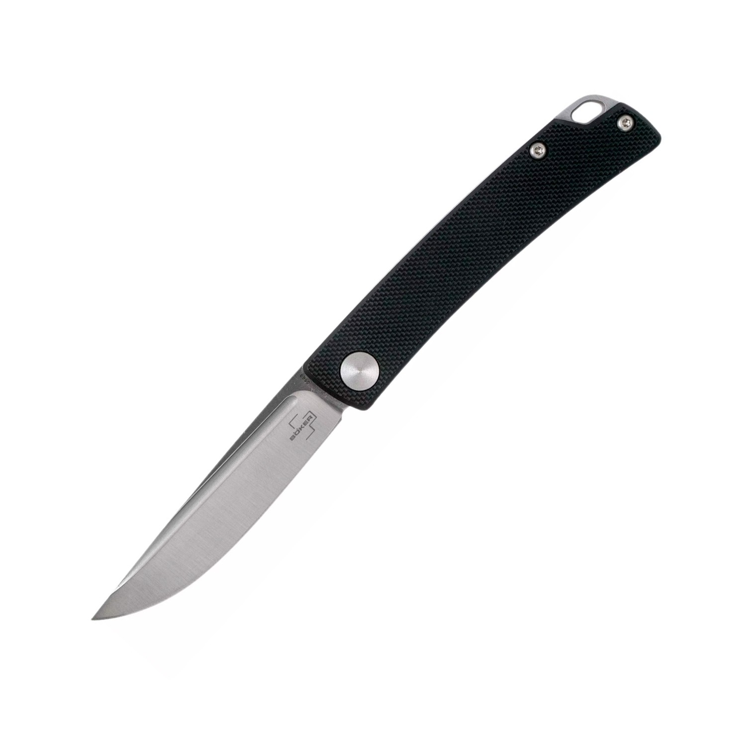 Рукоять складається з двох плашок, виконаних з композитного матеріалу текстоліт G-10. Плашки з'єднані за допомогою бэкспейсера з нержавіючої сталі. Відсутність сталевого корпусу забезпечує ножу легкість, а властивості використаного матеріалу – міцність. Крупно текстурована поверхня перешкоджає ковзанню ножа в руці. У виступі бекпейсера зроблено отвір для темляка.Для носіння ножа Böker Plus Celos G10 на кишені є знімна сталева кліпса глибокої посадки..