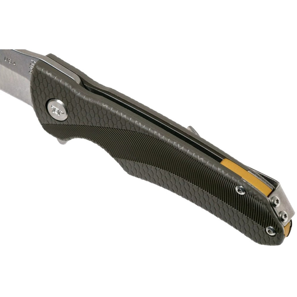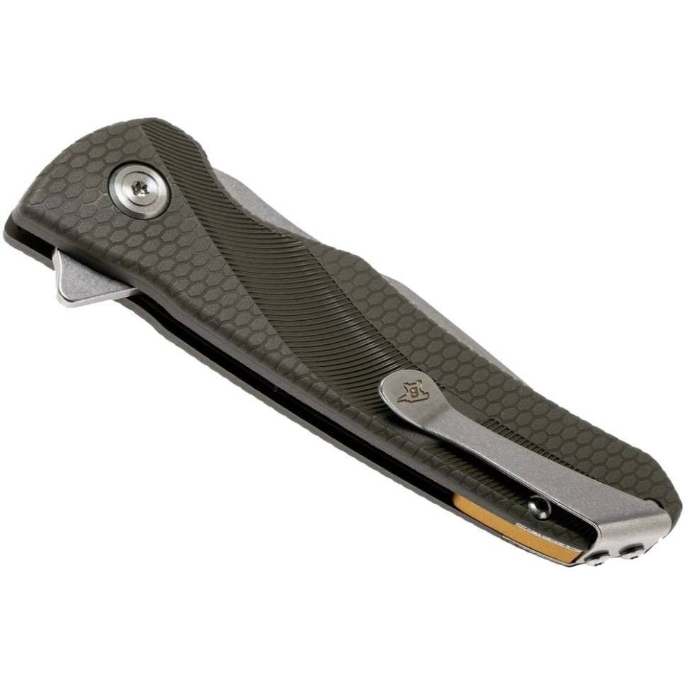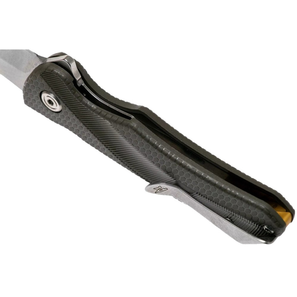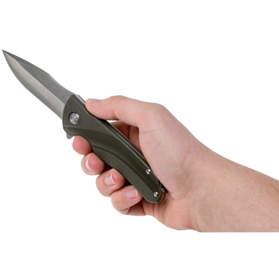 Серія Sprint Select – новий виток у бюджетній, але дуже якісної лінійці Buck. Ножі відкривають за допомогою фліпера на підшипниках, фіксація клинка йде за рахунок класичного лінійного замку. Рукоять має продумані насічки і виїмки для кращого утримання і довгої роботи. Цікава також модифікація клинка форми drop point. Ніж оснащений кліпсою для глибокого носіння на кишені.