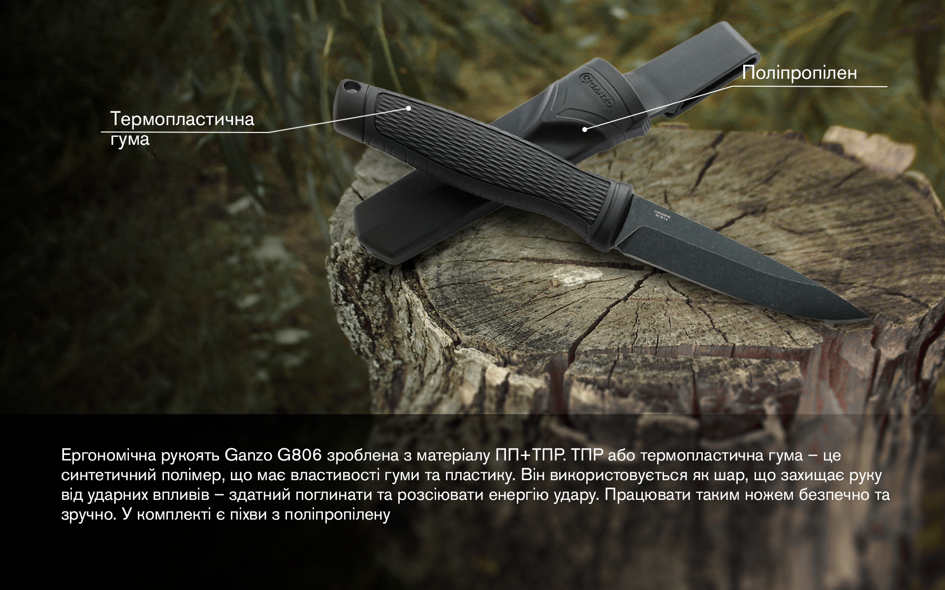 У ножі Ganzo G806BW-BK використані матеріали: