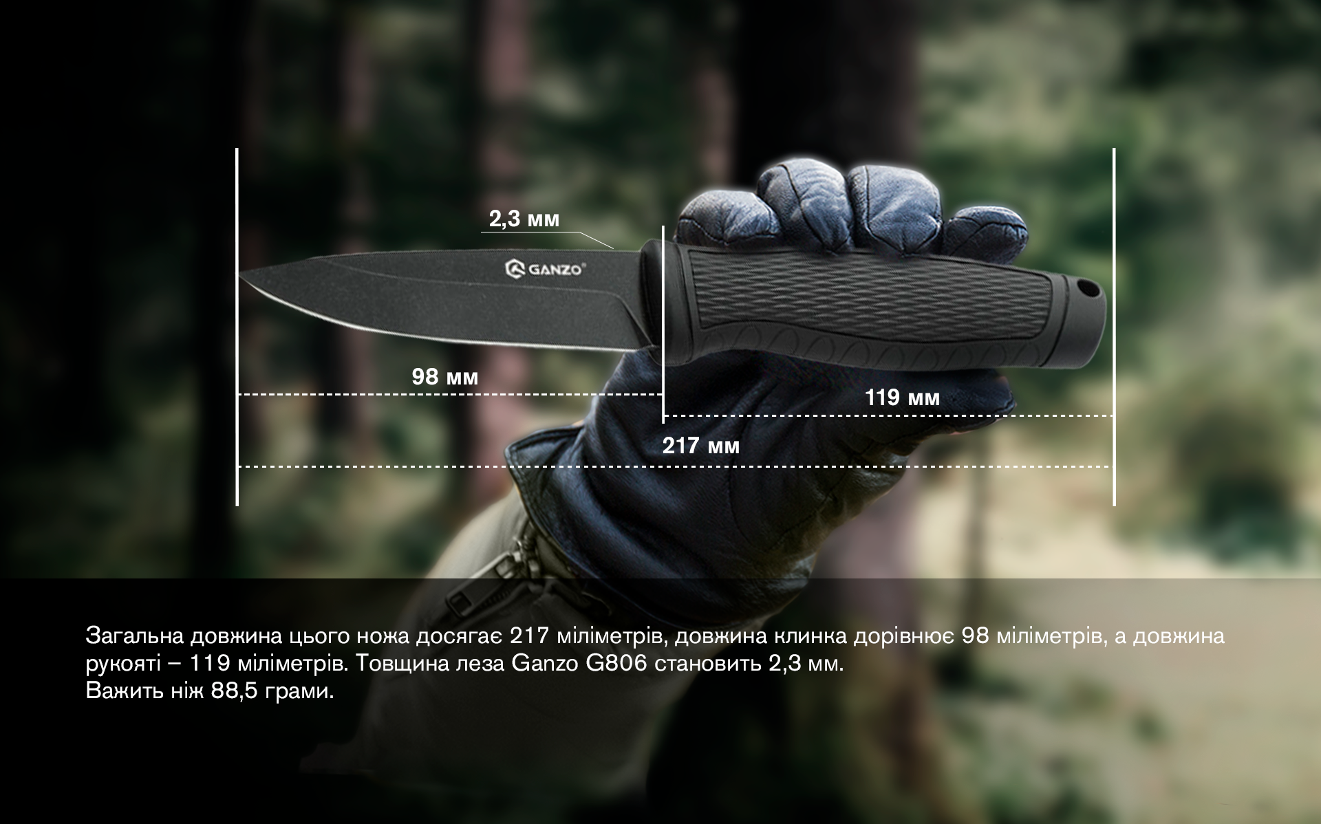 Опис ножа Ganzo G806BW-BK чорного з чохлом: