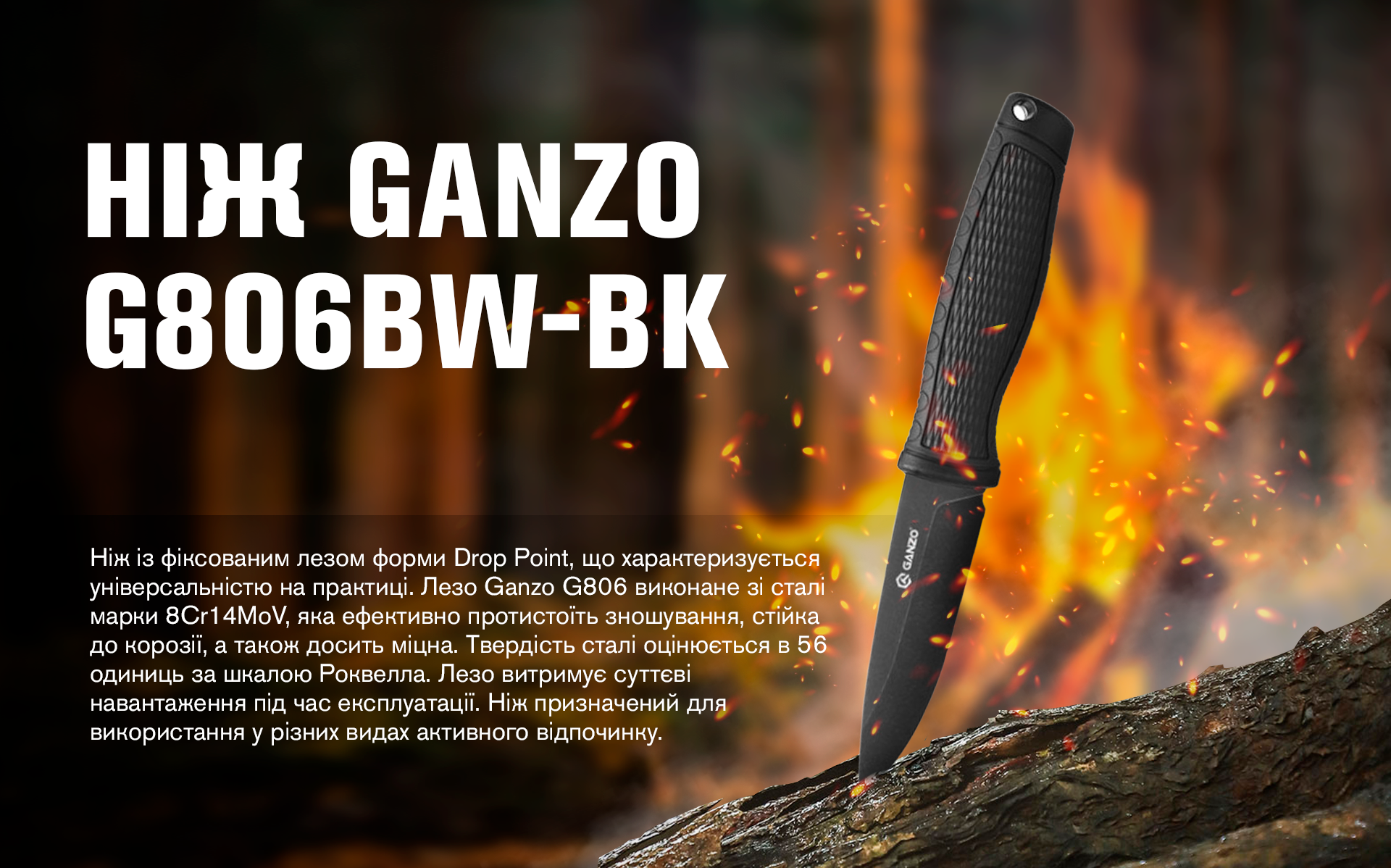 Ніж Ganzo G806BW — універсальний інструмент для туризму, аутдору та побутових робіт. Фіксована конструкція витримує високі навантаження, тому в критичний момент впорається навіть із тактичними завданнями, де потрібне особливо витривале лезо.