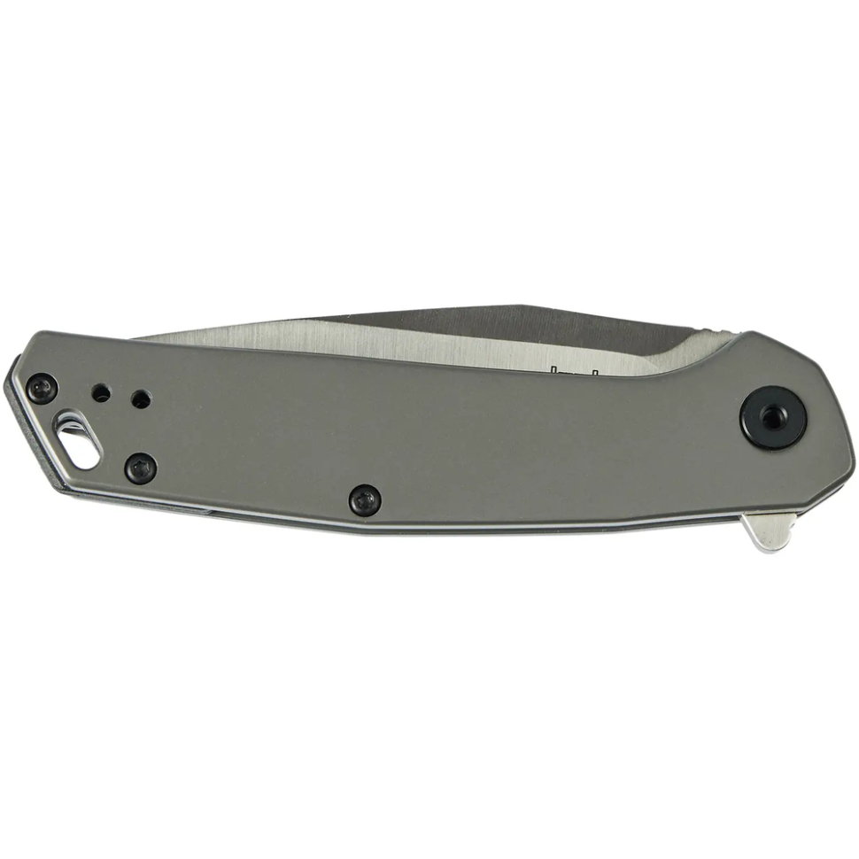 Клинок ножа профілю Clip Point, виготовлений із високовуглецевої нержавіючої сталі 8Cr13MoV. Має звичайну різальну кромку та за потреби легко піддається заточці. Підпружинений клинок витягується за допомогою фліпера. В робочому положенні фіксується за допомогою надійного замка Frame Lock. Руків'я виготовлено із нержавіючої сталі з PVD-покриттям сірого кольору. Для зручності носіння в кишені передбачена двостороння кліпса глибокої посадки, а також на руків`ї передбачений отвір для темляка.
