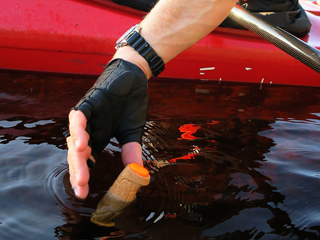 Пластикова основа рукояті покрита шаром з коркового дерева, завдяки яким ніж залишиться на плаву при падінні у воду. Крім того, така поверхня забезпечує надійне зчеплення з долонею в умовах високої вологості. Також завдяки використанню легкого коркового дерева ніж важить всього 87 грам.