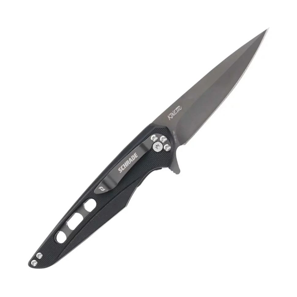 Серія Kinetic від Schrade повністю виправдовує свою назву. Цей вражаючий компатний ніж оснащений надковзним підшипником з фліппером для найплавнішого та найшвидшого відкриття на ринку ножів без прупружиненого механізму. Високоякісне лезо з нержавіючої сталі AUS-8 має форм-фактор spear point для максимальної гнучкості будь-якого завдання. Високоякісна нековзна рукоятка з композиту G10 є ідеальним доповненням для Kinetic та символізує вдосконалену майстерність нової лінійки Schrade. Kinetic також замінить ваш спіннер, тому що ви не зможете утриматися від гри з цим дивовижним маленьким ножем.