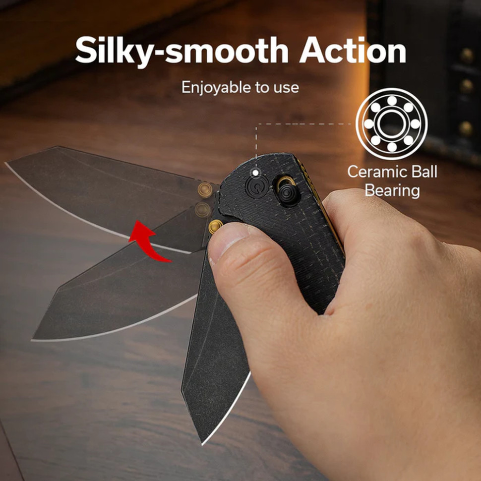 В основі механіки лежить замок Crossbar Lock. Він забезпечує залізну фіксацію леза та дозволяє миттєво скласти ніж однією рукою. Завдяки системі керамічних підшипників відкриття відбувається плавно і чітко. Двосторонній шпеньок дозволяє однаково зручно працювати з ножем як правші, так і лівші.