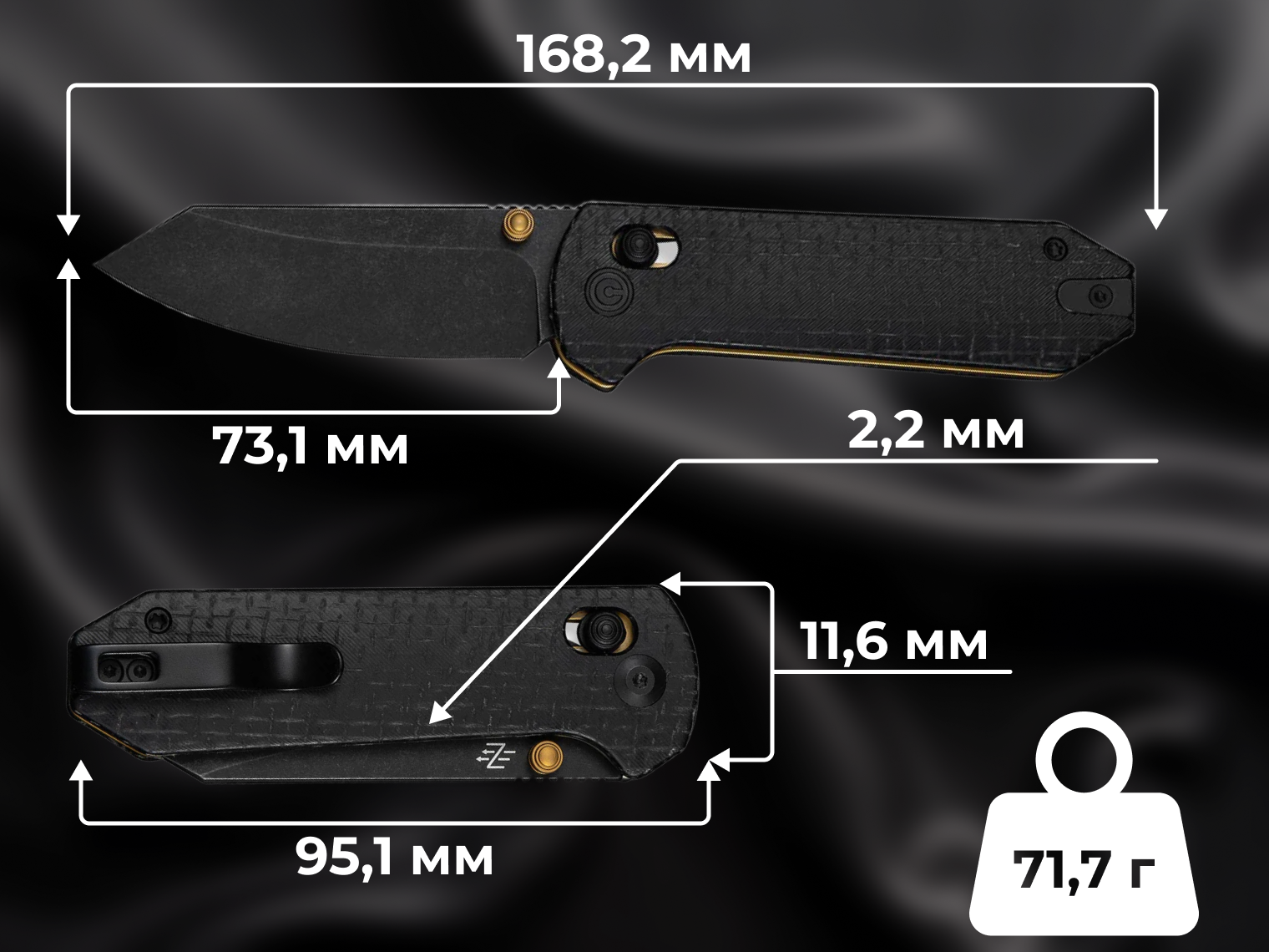 - довжина клинка — 73,1 мм;