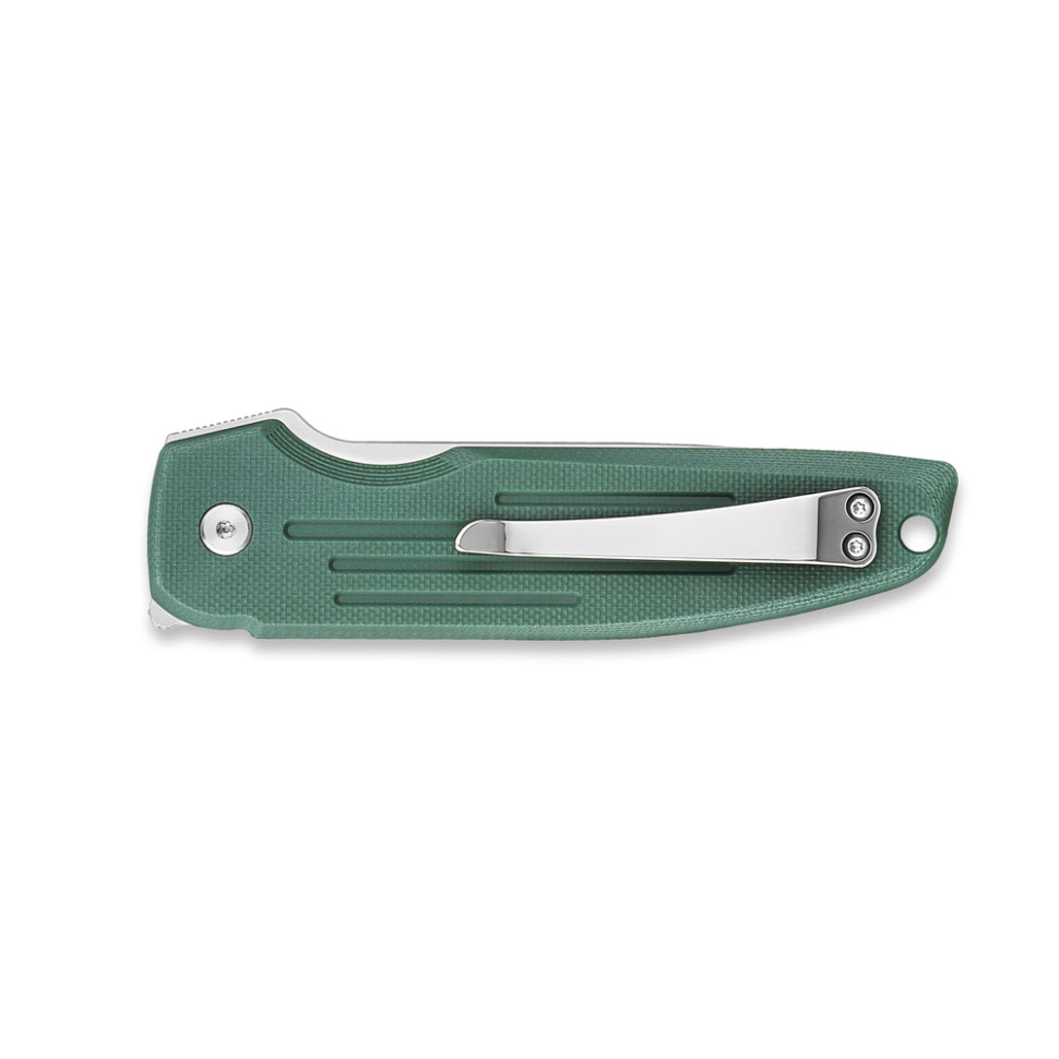 - Склопластикові накладки на руківʼї. Композит G10 відрізняється високою стійкістю до механічного впливу та вологи. Матеріал не тріскається у разі падіння ножа, не деформується під час температурних коливань, а також не вбирає воду та запахи. До того ж текстурована поверхня плашок покращує зчеплення з долонею.