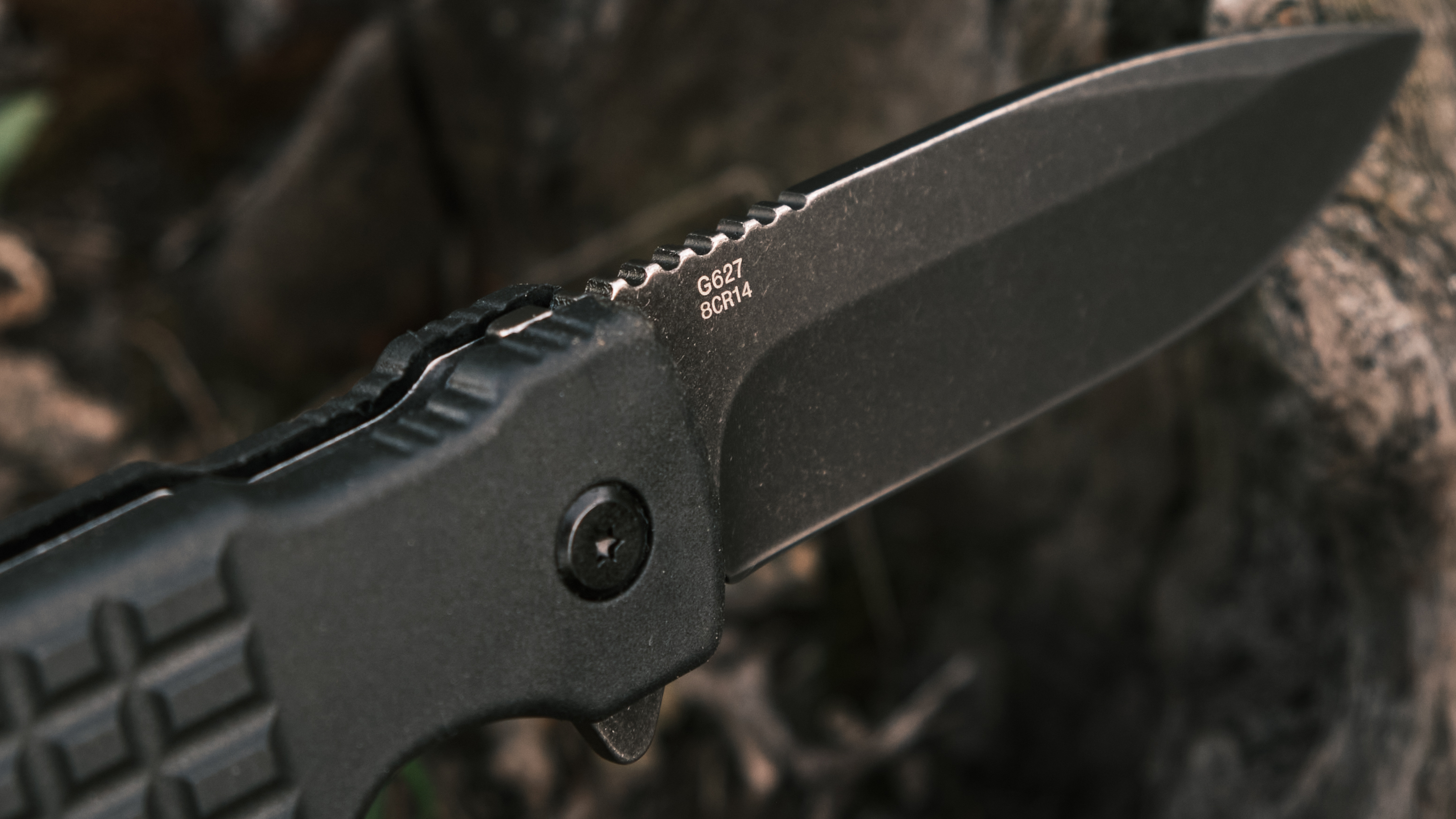 Клинок виготовлений зі сталі 8CR14 з чорним покриттям. Метал демонструє високу опірність до корозії, тому не вимагає спеціального догляду. Твердість марки знаходиться на рівні ±58 HRC, витримуючи баланс між міцністю та легкістю у заточуванні, яке можна виконати в домашніх умовах з використанням звичайних абразивів.