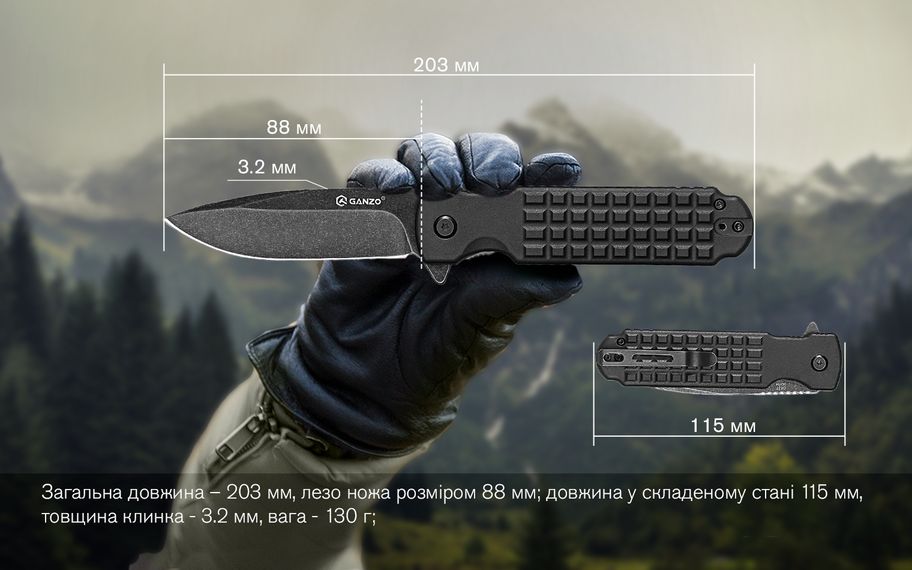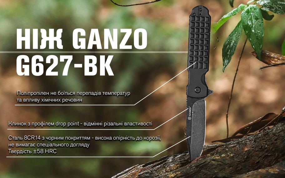 Опис складаного ножа Ganzo G627-BK, чорного: