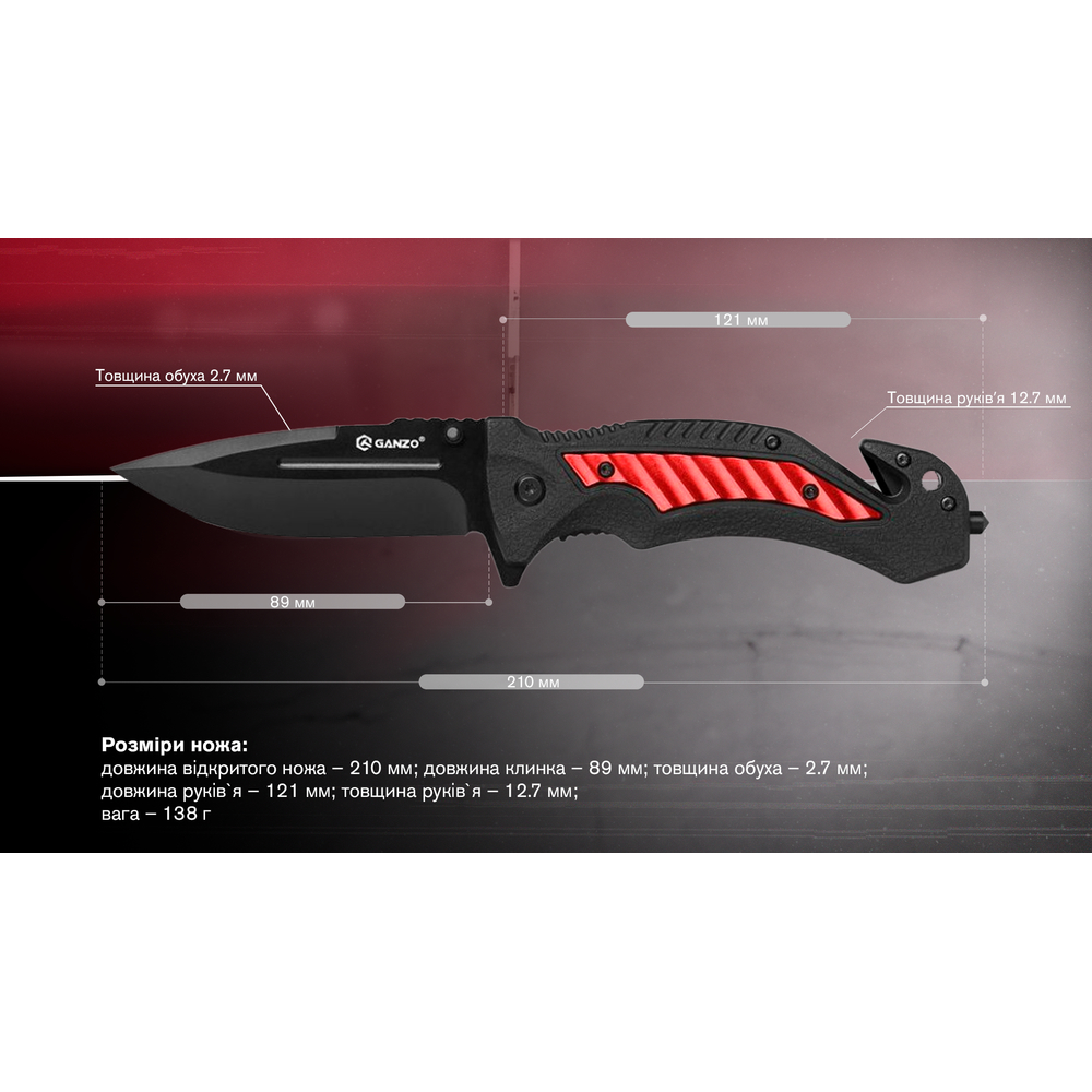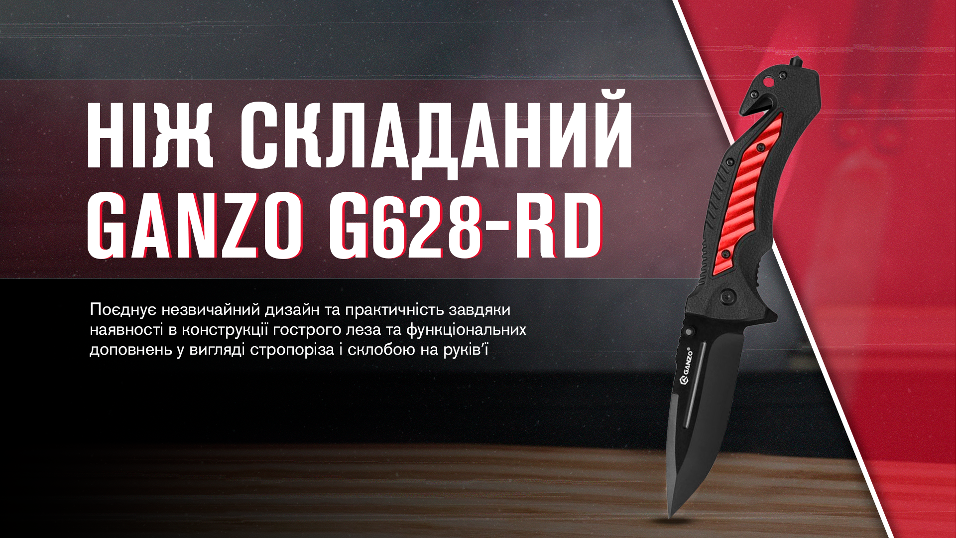 Опис складаного ножа Ganzo G628-RD, червоного: