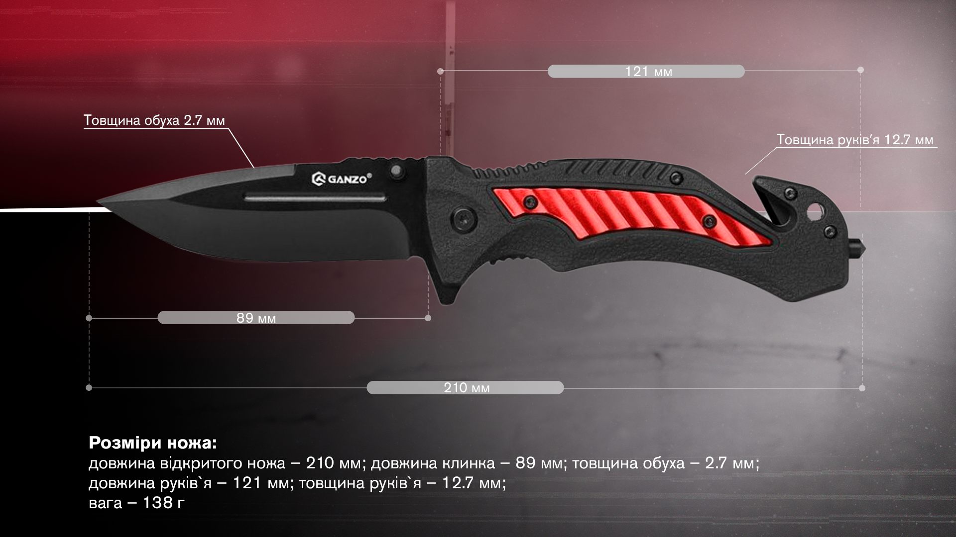 - довжина відкритого ножа – 210 мм;