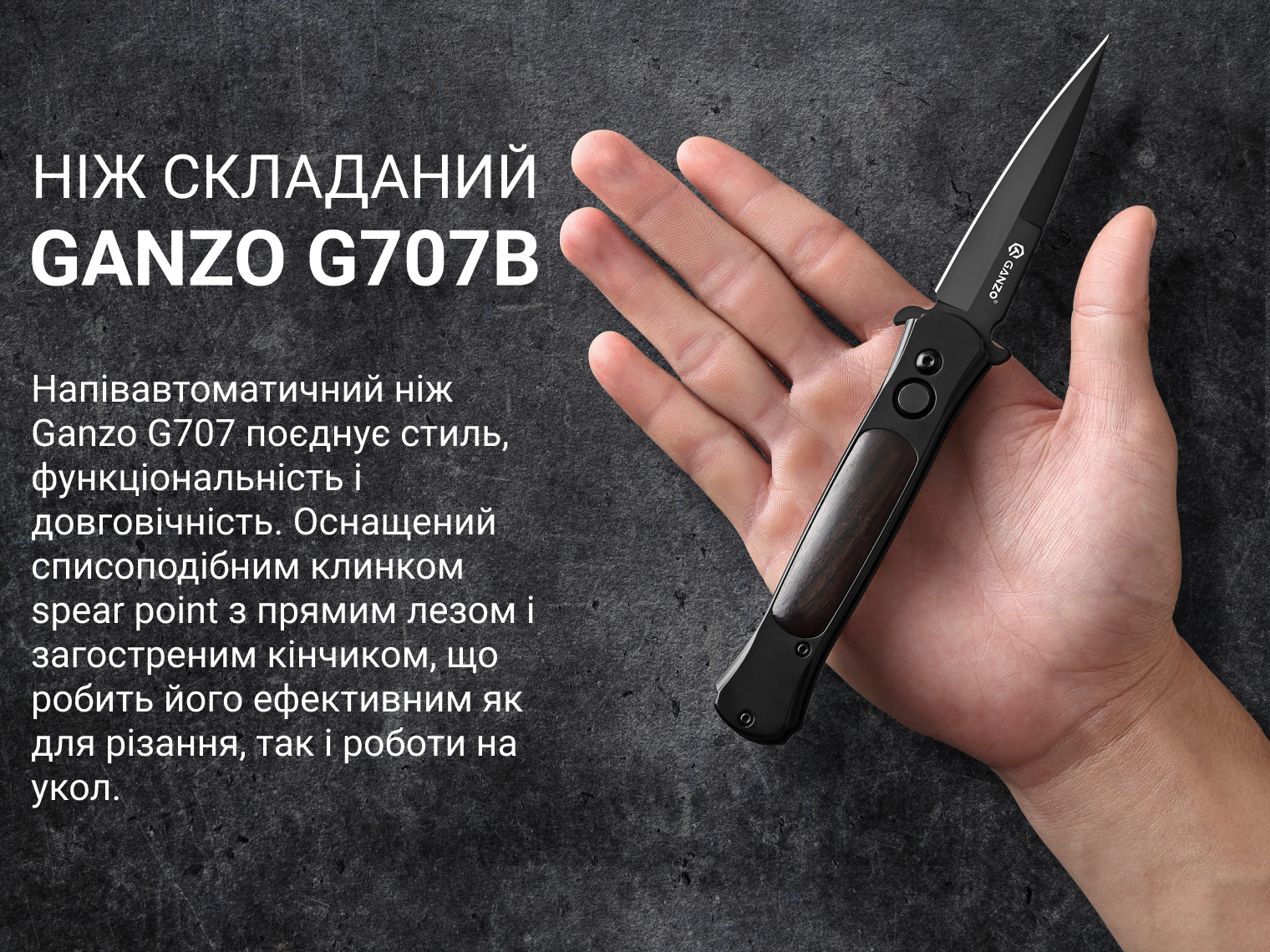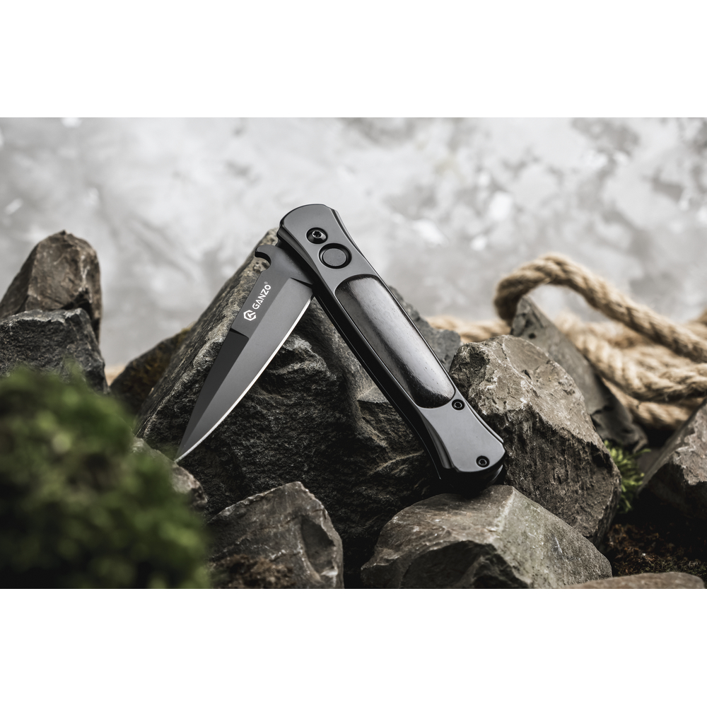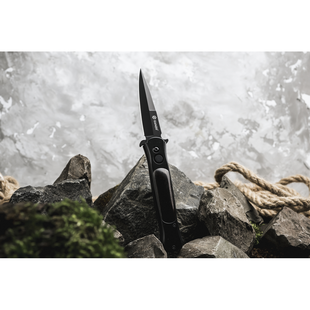 Напівавтоматичний ніж Ganzo G707 поєднує стиль, функціональність і довговічність, притаманні інструментам бренду. Він оснащений списоподібним клинком spear point з прямим лезом і загостреним кінчиком, що робить його ефективним як для різання, так і роботи на укол.