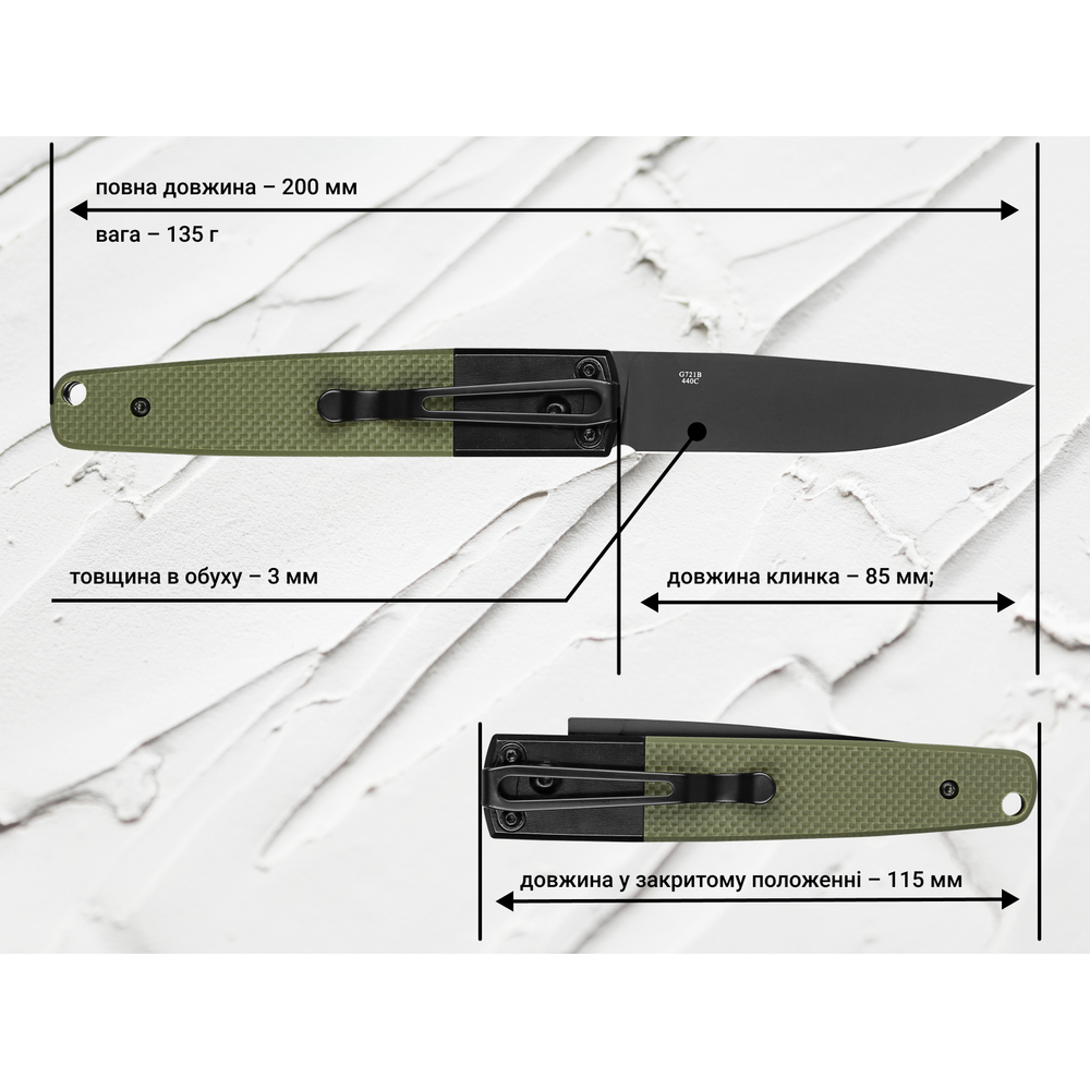 Опис складаного ножа Ganzo G721B-GR зеленого:
