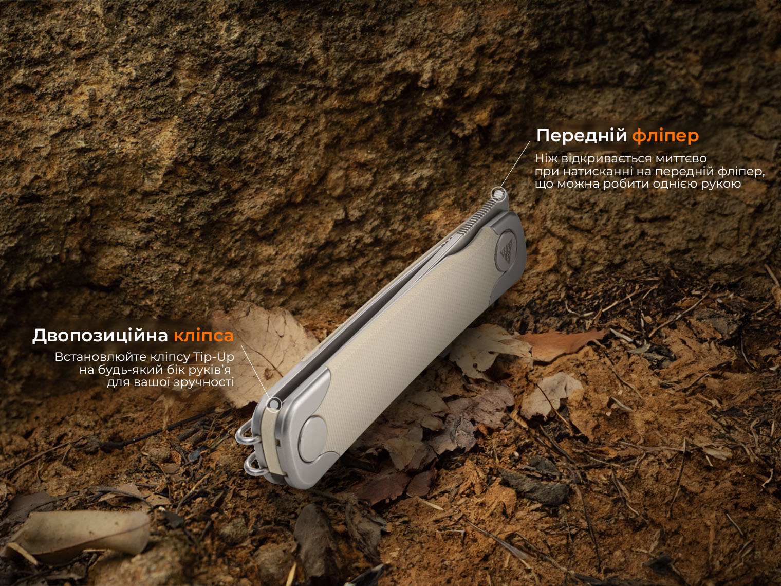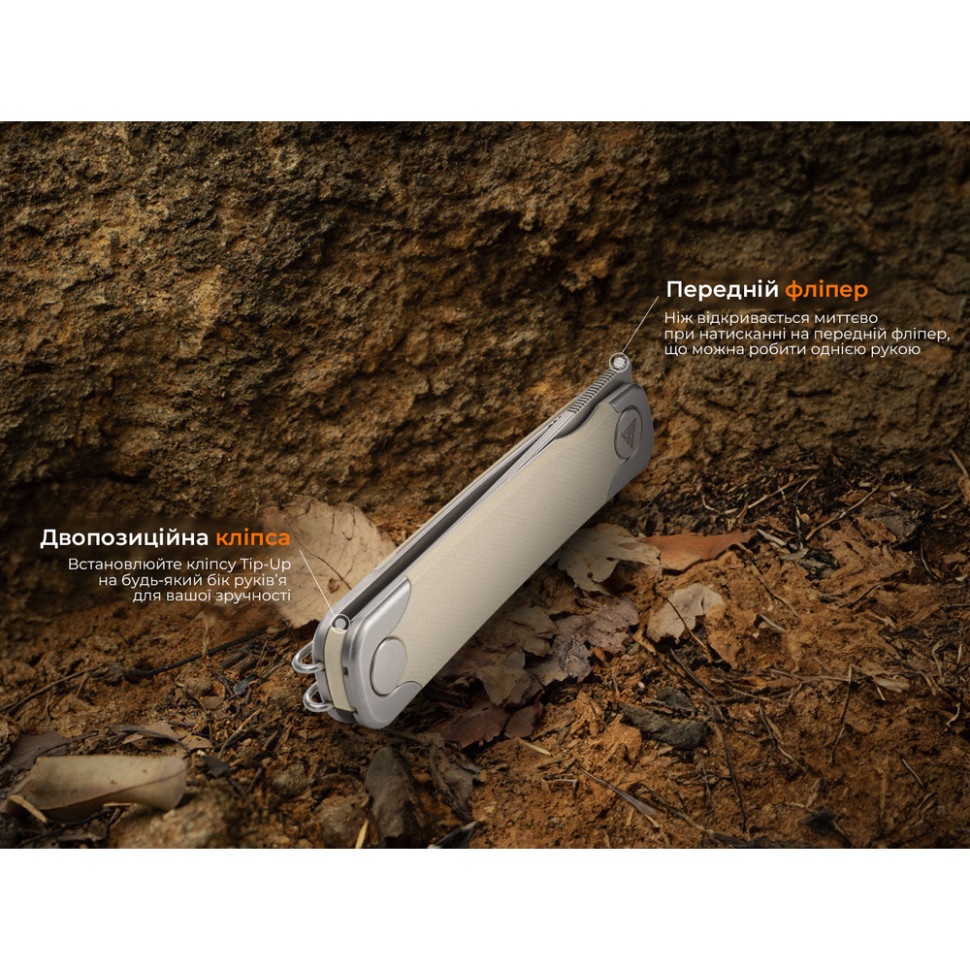 - ніж відкривається натисканням на передній фліпер;