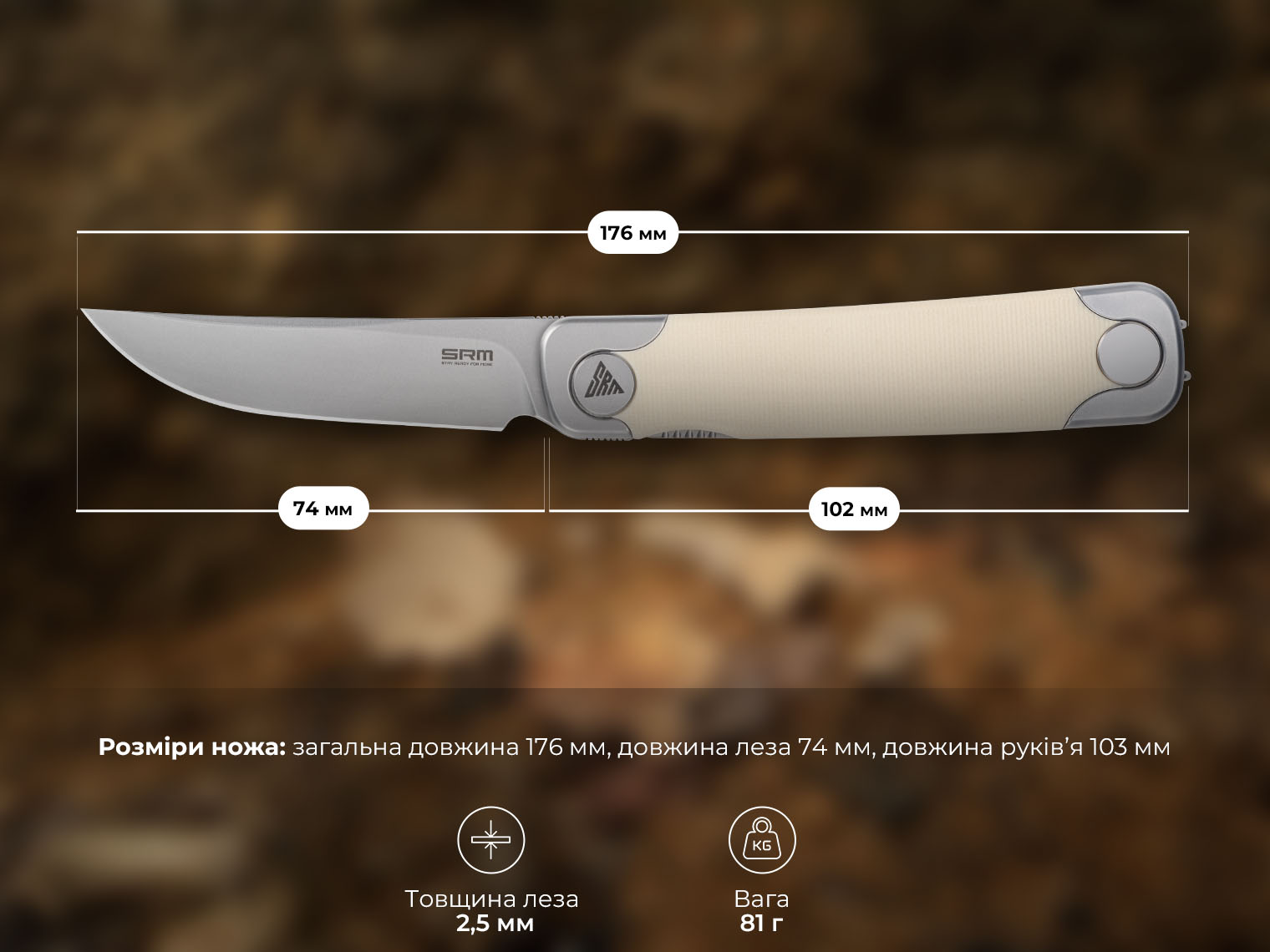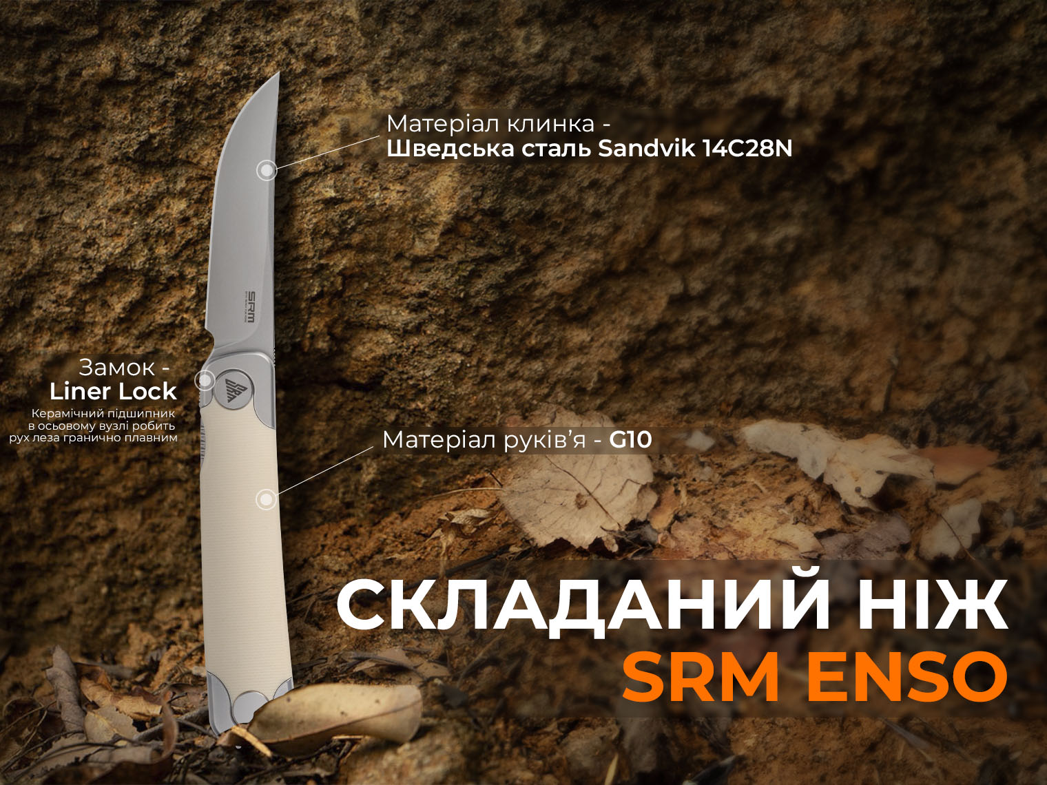 Серія SRM Enso включає складані ножі для повсякденного носіння, які адаптовані для виконання базових завдань. У конструкції поєднуються мінімальна вага (лише 81 г) та вивірена ергономіка, що розподіляє навантаження по всій долоні, знижуючи відчуття втоми.