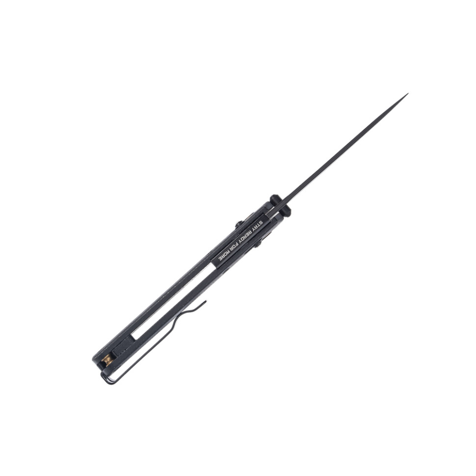 У хвості закріплено сталеву кліпсу, яка дозволяє повністю сховати ніж у кишені для непомітного носіння.