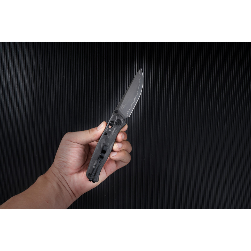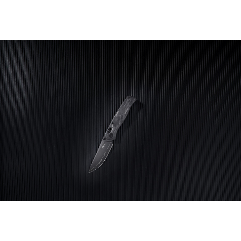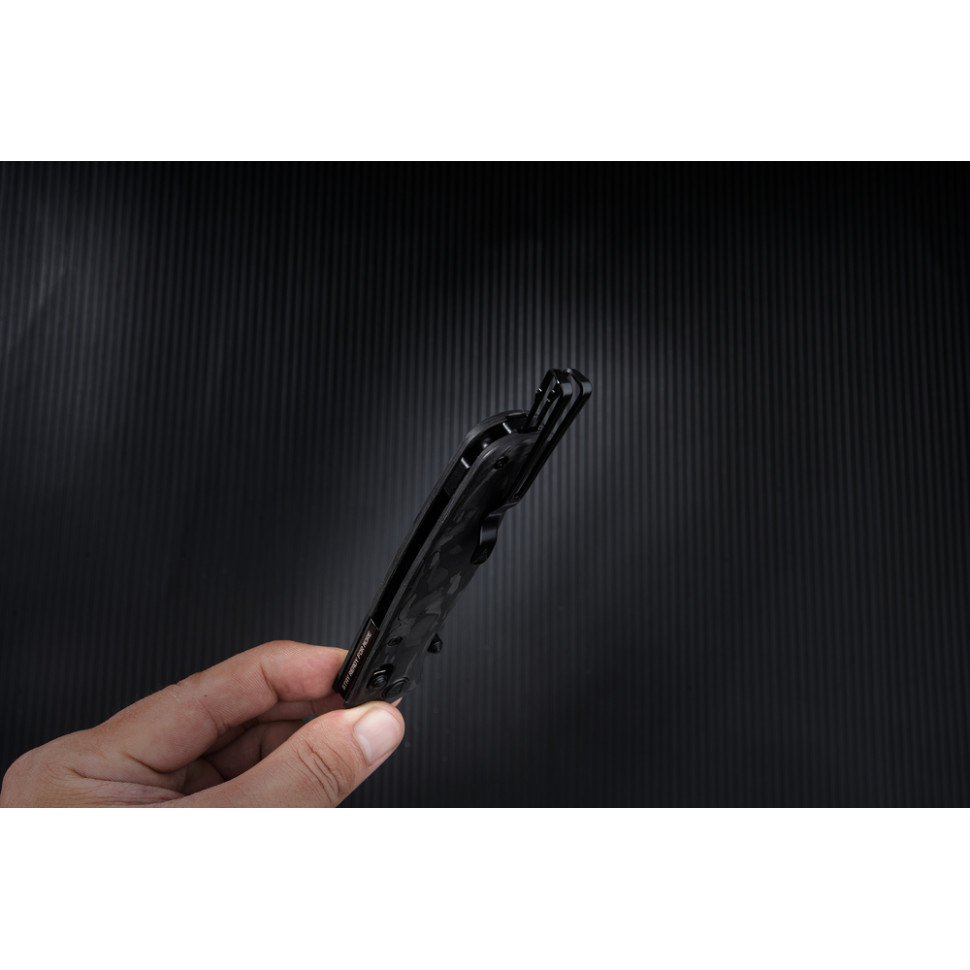 Для відкриття ножа достатньо натиснути одним пальцем на двосторонній шпеник, який однаково зручний для взаємодії правою та лівою рукою. Керамічні підшипники роблять рух леза плавним та передбачуваним.