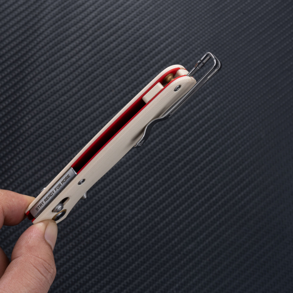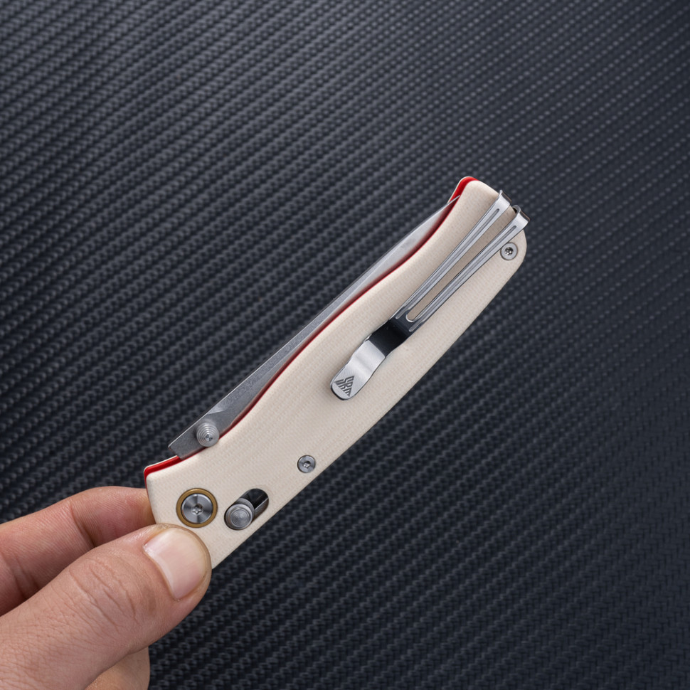 У хвості закріплено сталеву кліпсу, яка дозволяє повністю сховати ніж у кишені для непомітного носіння.