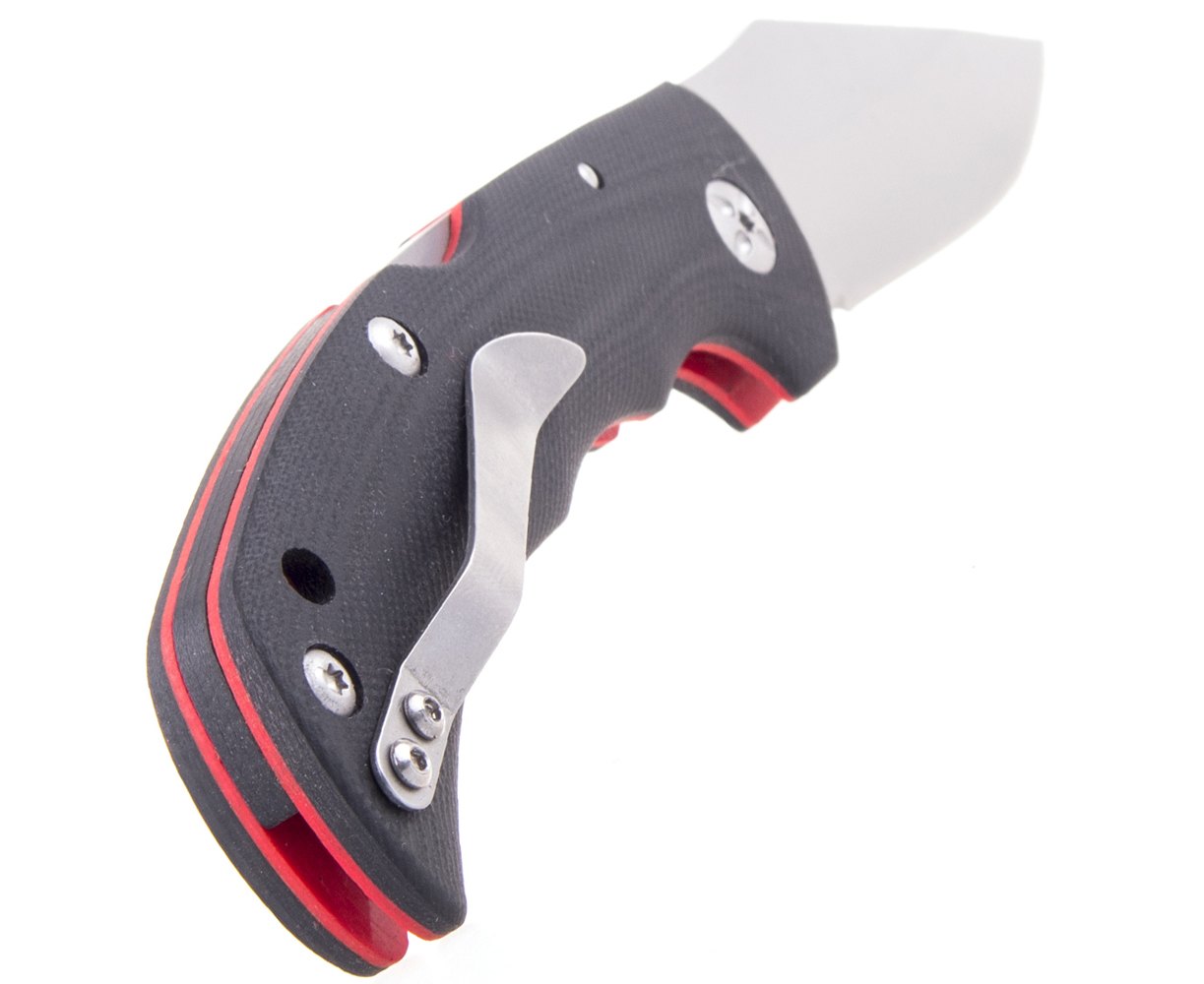Рукоять має ергономічний форм-фактор і покрита текстурними накладками з G-10, а також з інтегрованим пластиковим бекспейсером в тильній частині. Така форма рукояті прекрасно фіксується під час роботи будь-яким хватом. На рукояті передбачена одностороння кліпса для носіння ножа в положенні tip-up і отвір під темляк.