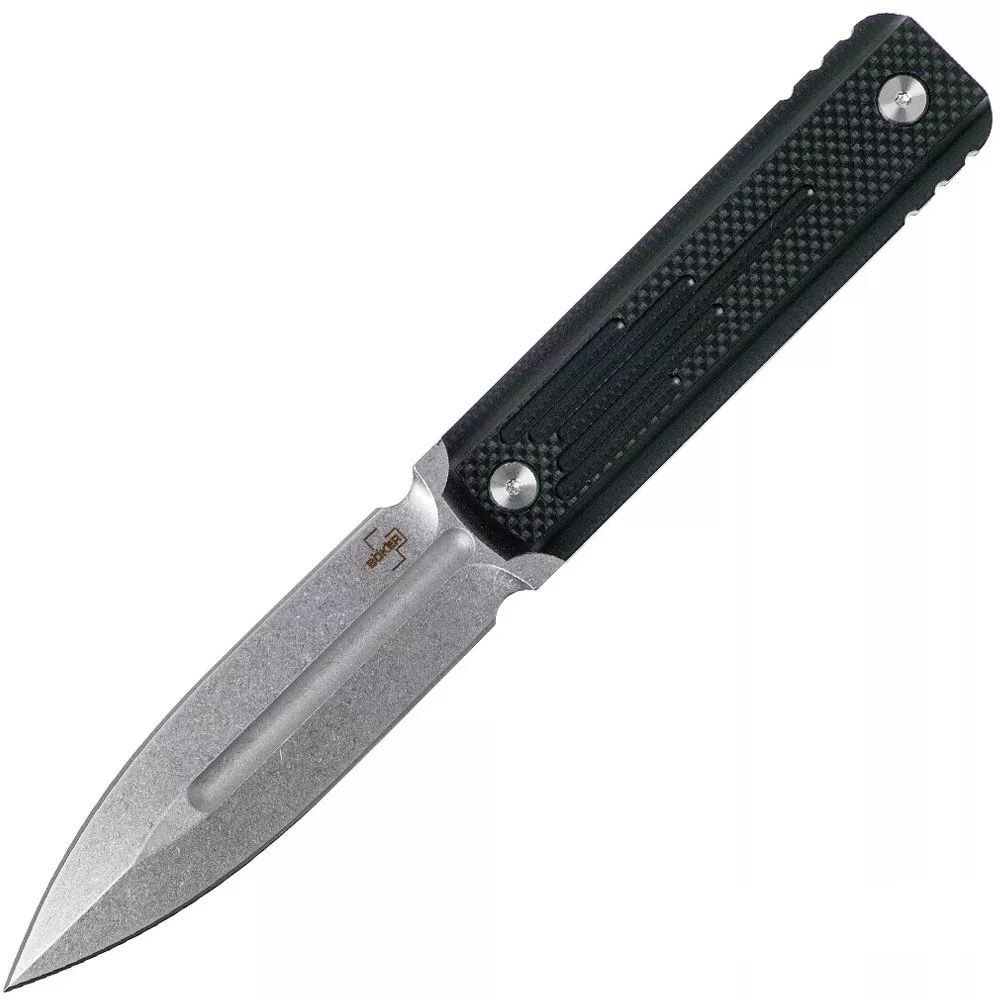 Клинок ножа виготовлений у формі Spear point, має широке ребро жорсткості з жолобами і симетричними підпальцевими виїмками, обмежувача не має. Клинок виготовлений з інструментальної сталі D2 з фінішною обробкою Stonewash. Він має обопільну заточку і ним можна здійснювати не тільки ефективний укол, а й різ.