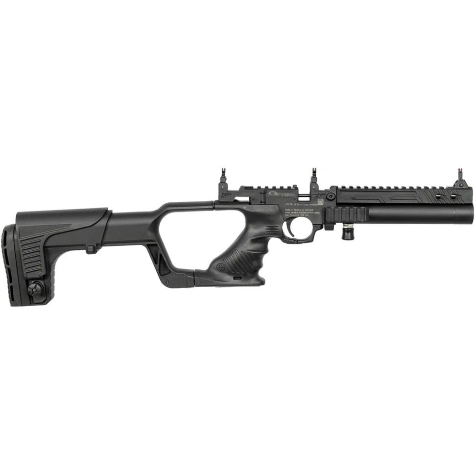 Optima Jet - пневматичний PCP пістолет з можливістю перетворення його на карабін завдяки зйомному, регульованому прикладу, що йде в комплекті. Призначений для спортивної та розважальної стрільби.