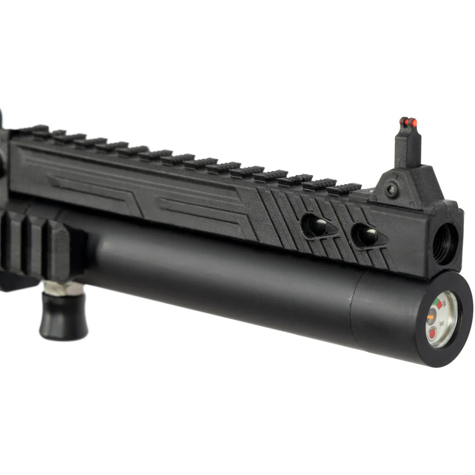 Джерелом енергії пістолета служить підствольний резервуар високого тиску об'ємом 40 см3. Сталевий ствол пістолета довжиною 200 мм здатний забезпечити оптимальну купчастість на дистанції до 25 метрів.