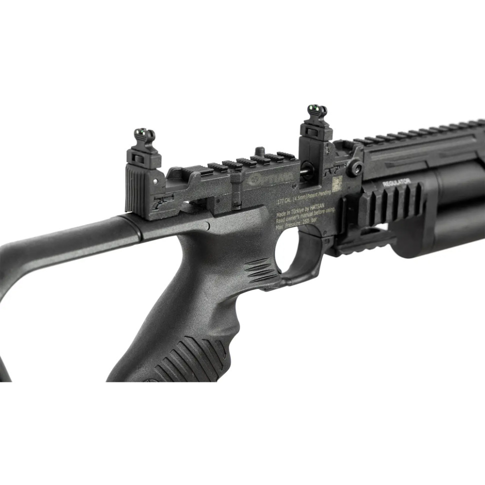 Телескопічний приклад оснащений гумовим потиличником і регульованою щокою, що дає змогу налаштувати його під індивідуальні особливості стрільця.