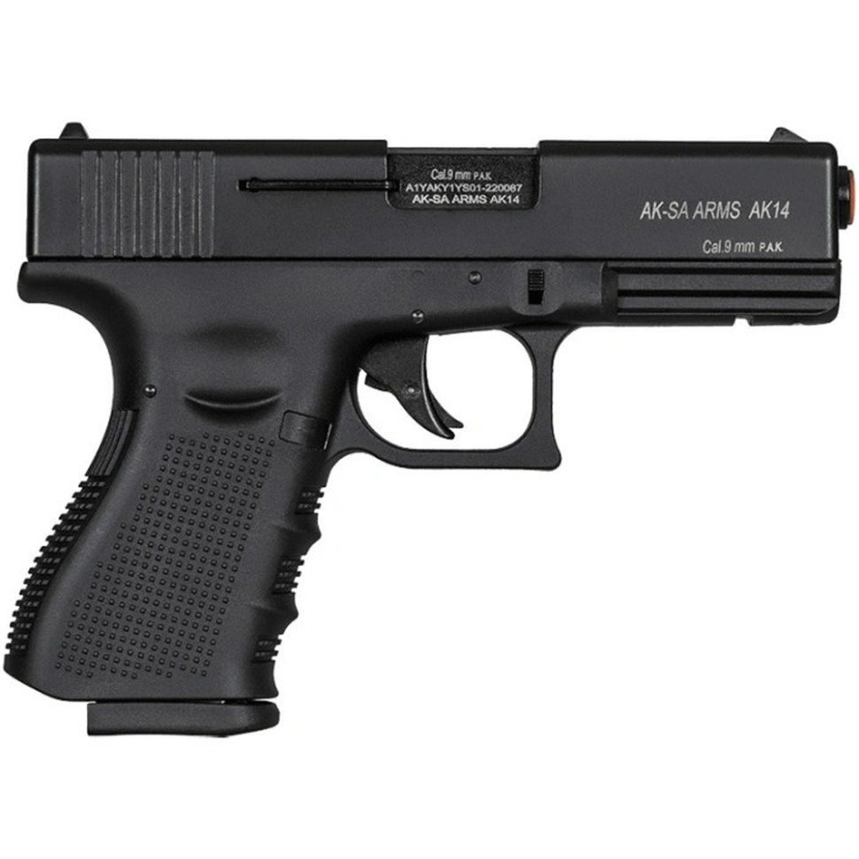 Пістолет сигнальний Акса Армс AK14 CC-01 cal.9 PAK Glock Black працює з холостими патронами 9 мм PAK, оснащений магазином на 14+1 патронів, а стрільба супроводжується реалістичною віддачею.