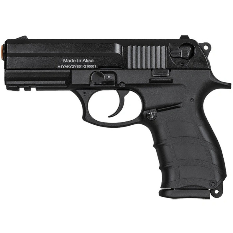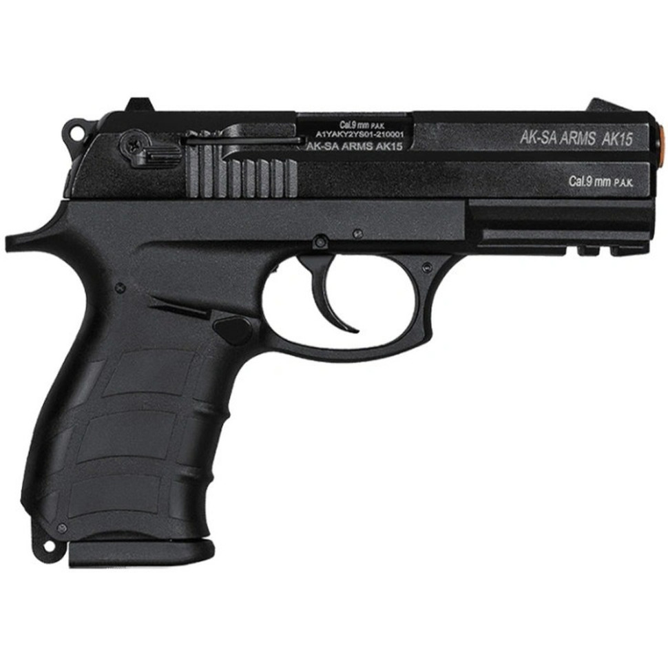 Пістолет сигнальний Акса Армс AK15 CC-01 Black працює з холостими патронами калібру 9 мм PAK, має магазин на 14+1 патронів та масивний металевий затвор, який разом із полімерною рамкою забезпечує надійність та довговічність.