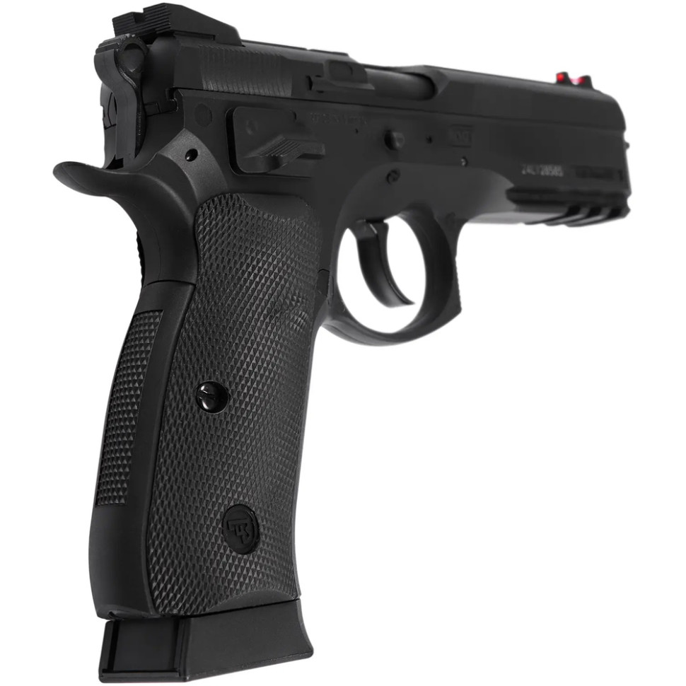 Страйкбольна версія від ASG ліцензована компанією CZ, саме тому на ній нанесені всі автентичні маркування та унікальний серійний номер. Вона доволі легка та проста у використанні. Для кращого тримання в руці, ергономічне руків’я має гумові накладки. Прицільні пристосування представляють собою цілик і оптоволоконну мушку червоного кольору. Інтегрована планка Пікатінні дозволяє встановити на пістолет додаткові аксесуари, такі як лазерні цілевказівники та підствольні ліхтарі.