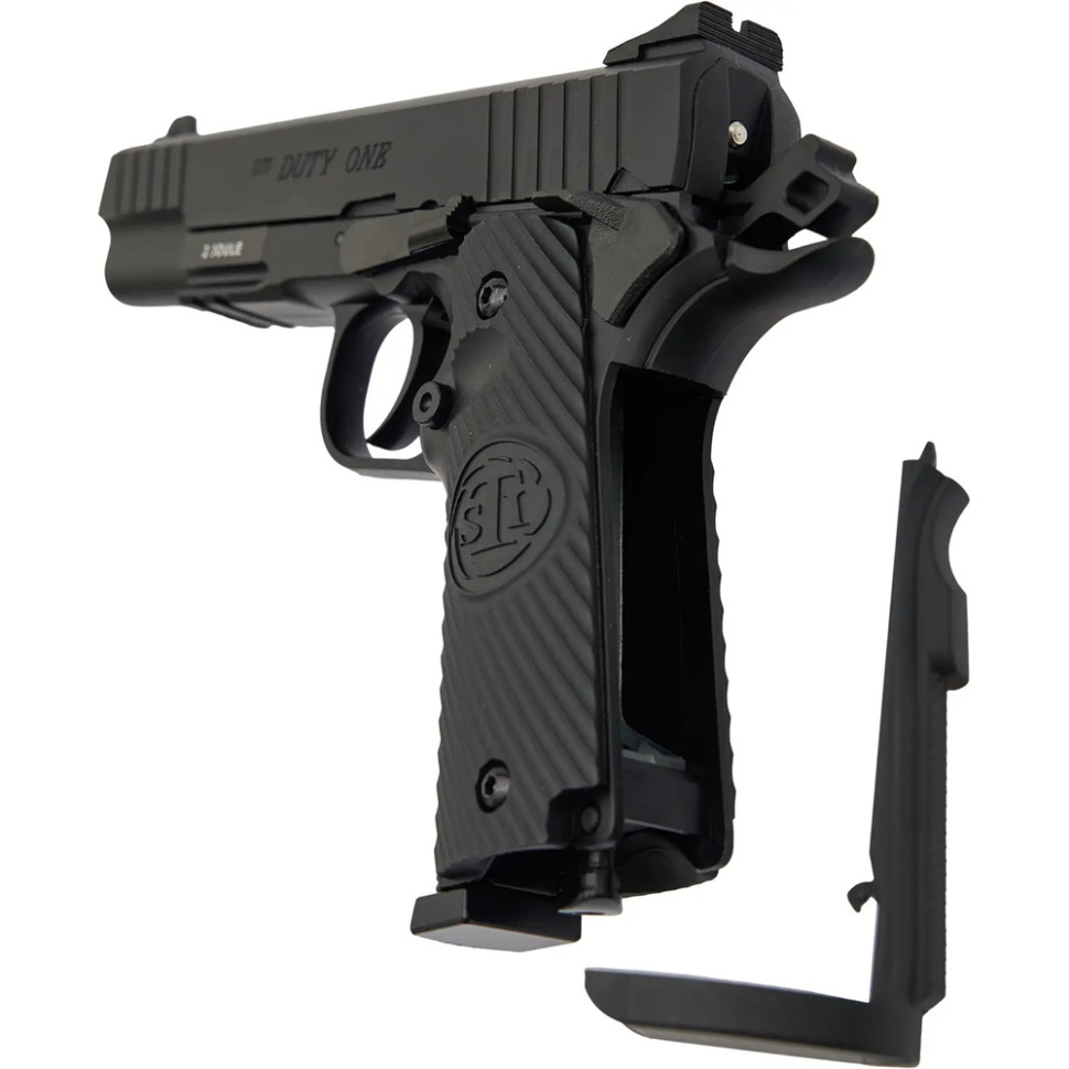 Пістолет ASG моделі STI Duty One виготовляються як у звичайній версії, так і у версії з імітацією перезаряджання (відкатом затворної рами при пострілі) – BLOWBACK Функція BLOWBACK абсолютно не впливає на політ кульки, при цьому створюючи відчуття використання бойового пістолета.
