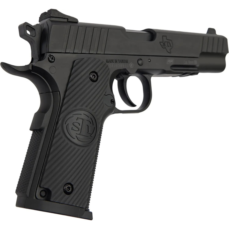 Дана модель ASG повністю повторює зовнішній дизайн пістолета Duty One американського виробника STI International. Своєю чергою STI створювала свій пістолет, базуючись на класичній моделі Colt 1911, трохи змінивши дизайн і додавши кілька удосконалень. Наприклад, інтегрований профіль Weaver для встановлення ліхтаря або лазерного цілевказівника і змінена руків’я для зручності утримання. ASG зберегла не тільки ці деталі, але і можливість перекручування металевого кожуха-затвора і функцію затворної затримки.