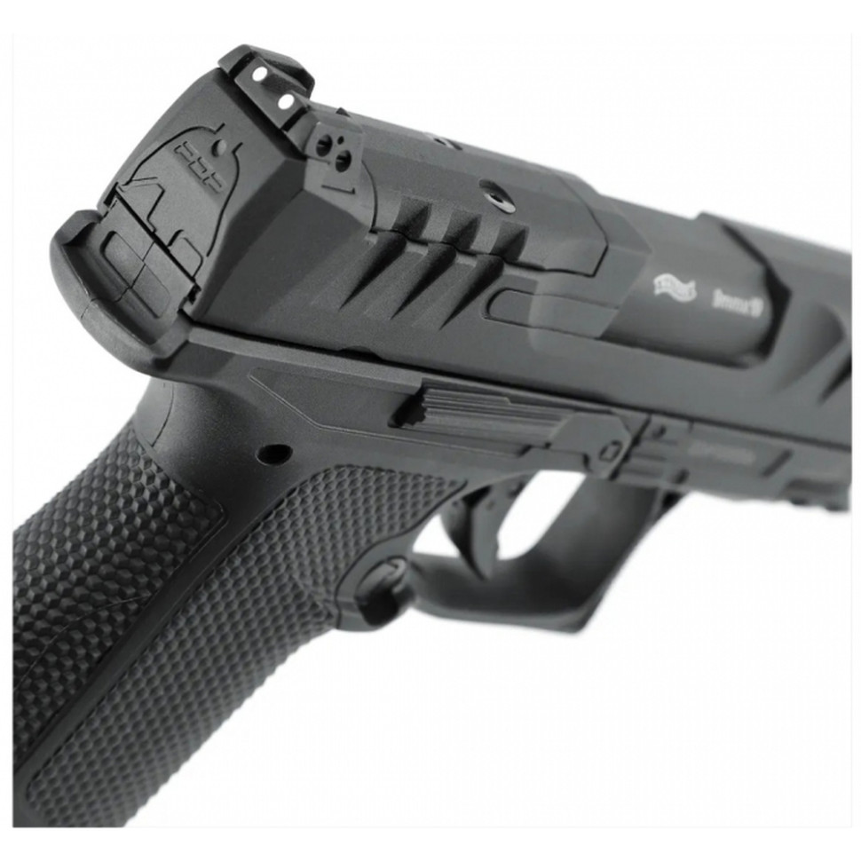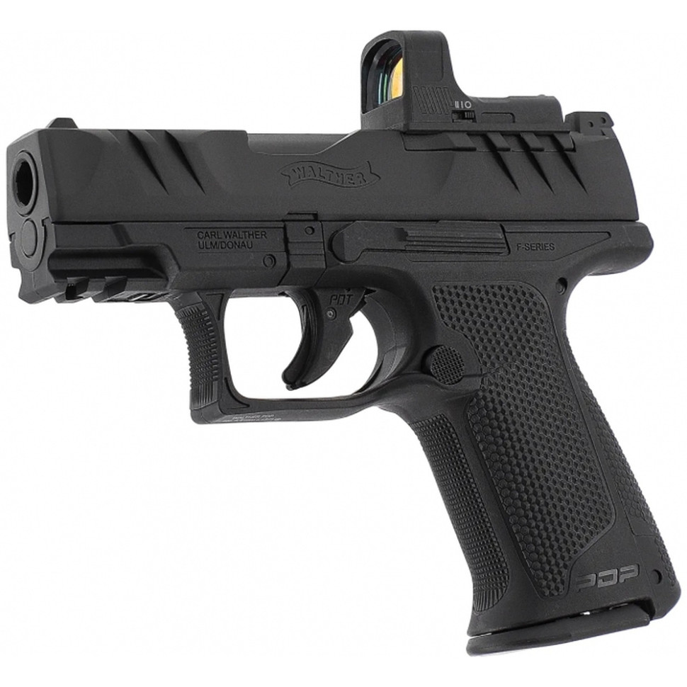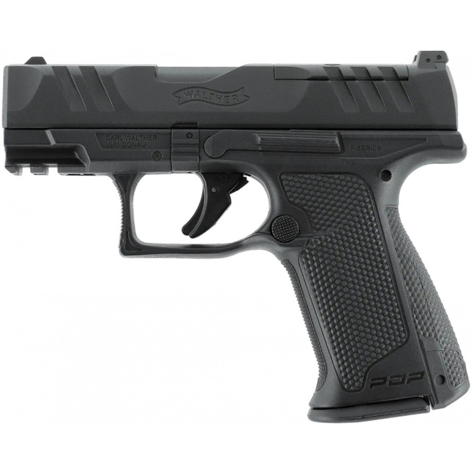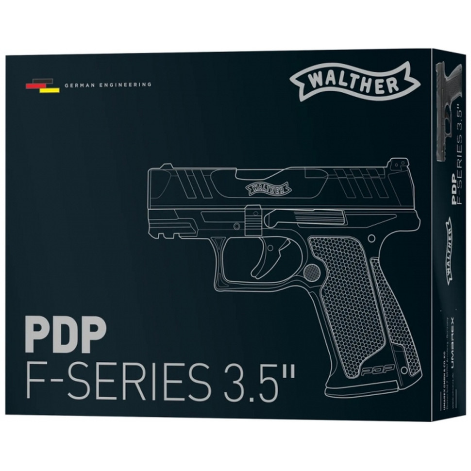 Пневматичний пістолет Умарекс Walther PDP F-Series 3,5" 4,5мм має зменшену товщину і новий кут пістолетної рукоятки, зберігаючи при цьому більшість особливостей стандартного PDP. А завдяки зменшеній відстані до спускового гачка, забезпечується правильне натискання на нього. Правильне розташування пальця на спусковому гачку є ключем до точної стрільби і контролю спуску курка. Затворна рама виготовлена з металу і має оптичний модуль Optics Ready (OR), що дозволяє встановлювати коліматорні приціли з кріпленнями Vortex, Leupold, C-More і Trijicon через окрему перехідну пластину (не входить в комплект). За замовчуванням встановлені відкриті прицільні пристосування з регульованим з боків цілком. Початкова швидкість досягає 120 м/с. Планка Пікатінні, розміщена під стволом, дозволяє встановлювати різні аксесуари. Інструмент для проколювання CO2 вбудований в задню кромку рукоятки, що спрощує використання пістолета.