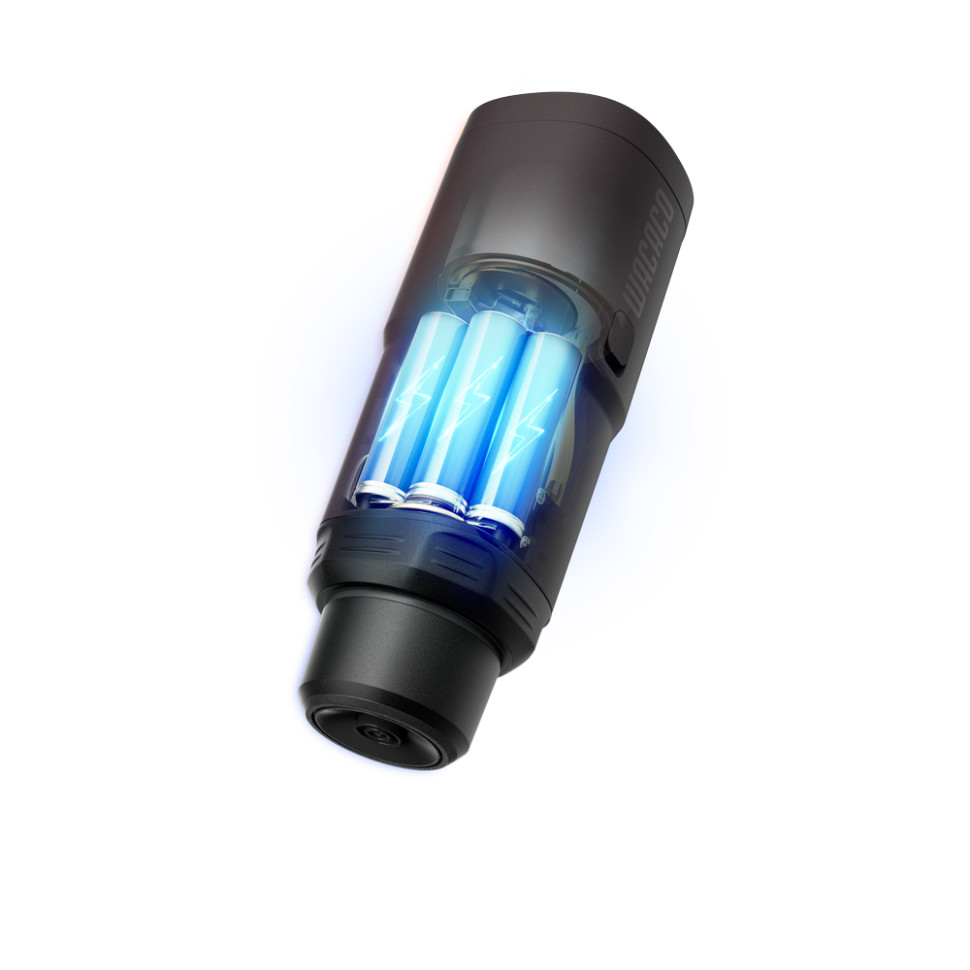 - Живлення від 3 акумуляторів по 3000 мАгод. Повного заряду акумуляторного блоку вистачає для приготування 8 порцій ристретто, 5 порцій еспресо, 2 порції лунго. У разі використання заздалегідь нагрітої води, кількість порцій зростає до 200 до повного розряджання батарей. Для заповнення заряду використовуйте зарядний кабель з комплекту, який під'єднується до порту USB Type-C 5В/3А. Процес заряджання триває 2.5 год.