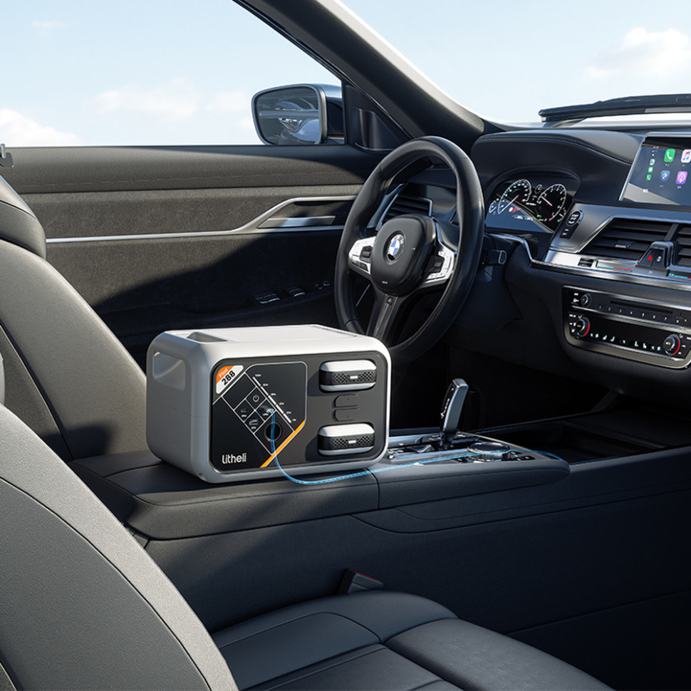 - 5 вихідних портів. Одночасно заряджайте кілька пристроїв, підʼєднавши їх до відповідних вихідних портів: AC (300 Вт), 2 х USB-C (100 Вт / 20 Вт), USB-A (18 Вт), прикурювач CIG (125 Вт).