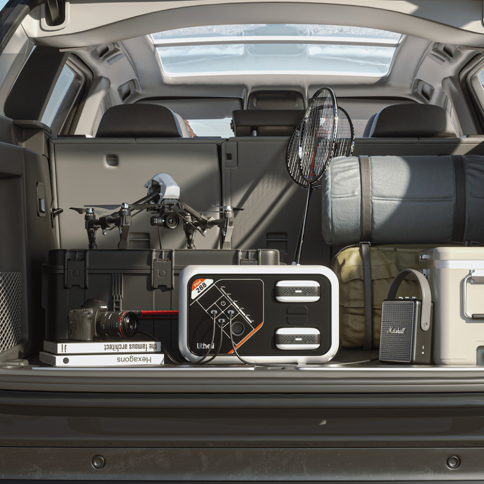 Попри виняткову потужність та функціональність, станція Litheli FLINT В288 має легкий корпус, який важить лише 3,5 кг та спрощує транспортування. Розміри конструкції не перевищують 285 x 180 x 175 мм, тому ви можете перевозити модель у багажнику автомобіля.