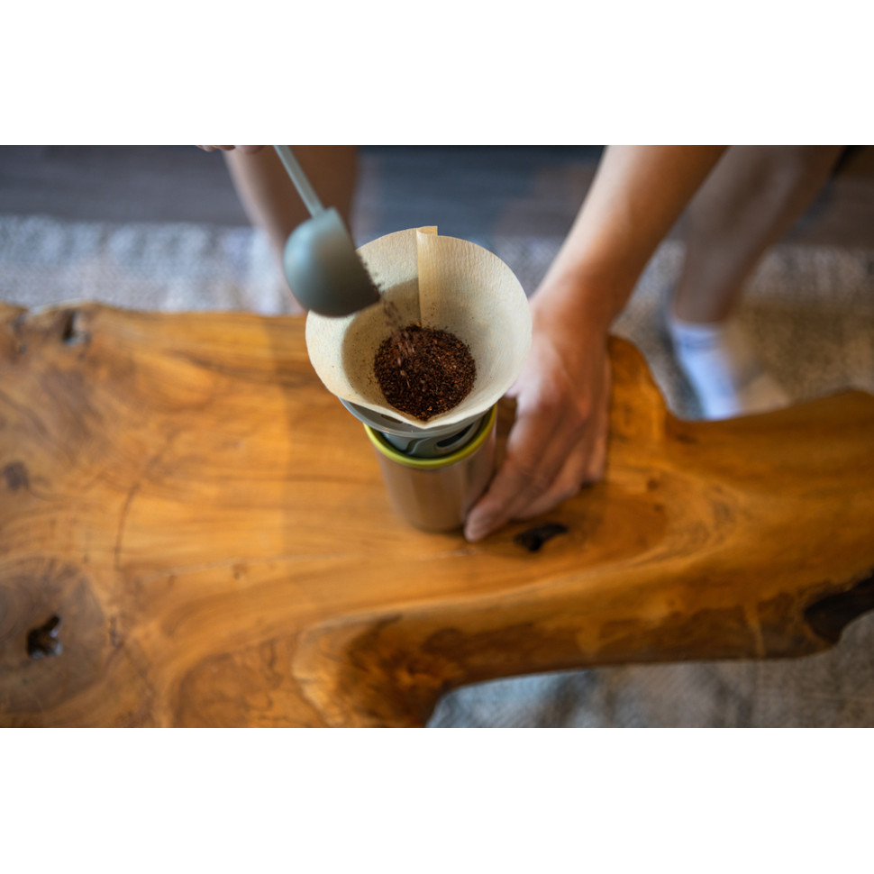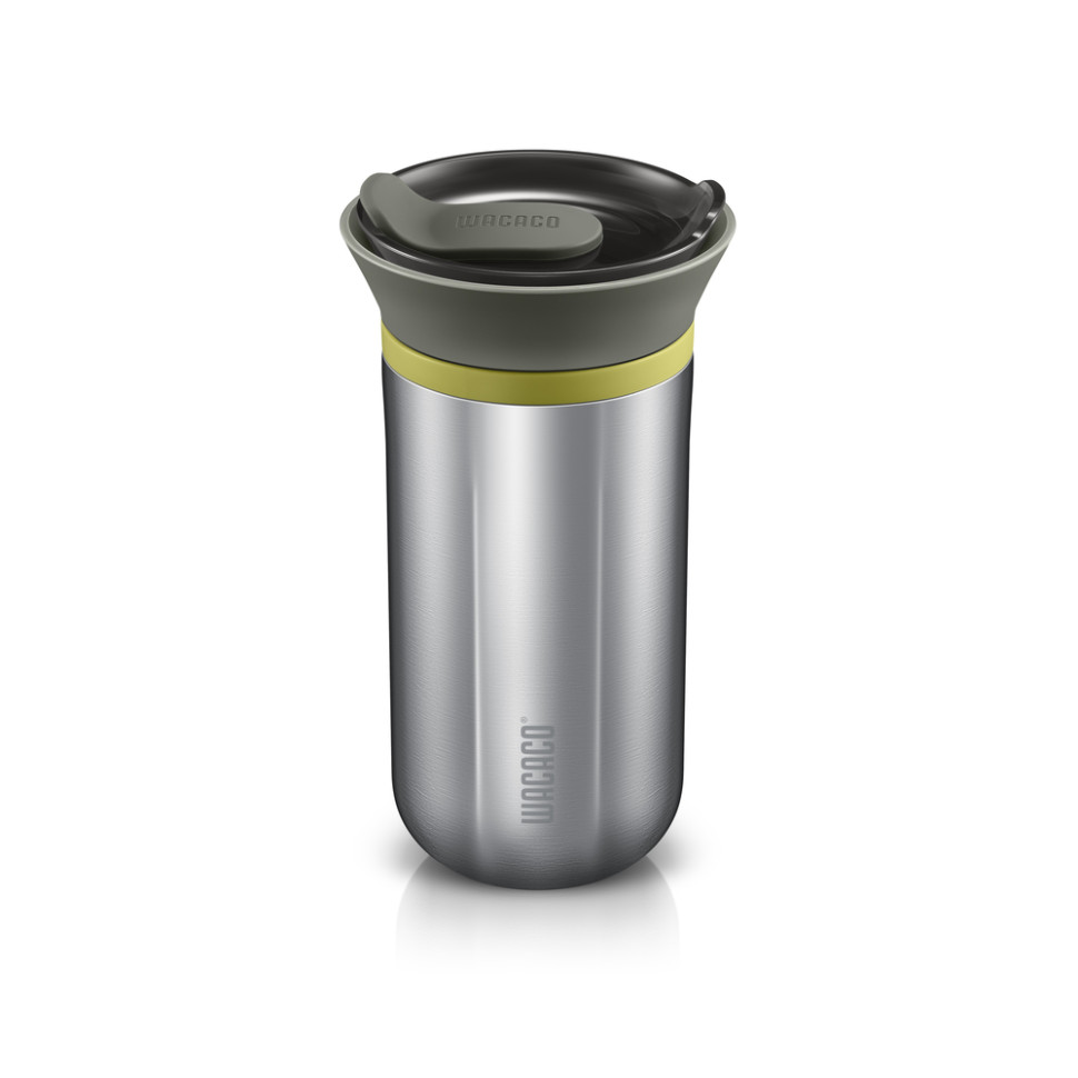 Компактний дріпер-термокухоль Wacaco Cuppamoka призначений для приготування кави методом проливу (пуровер), дозволяючи насолоджуватися ароматним напоєм в офісі, у відрядженні та в подорожі. Аксесуар робить процес заварювання кави швидким і простим: просто встановіть паперовий фільтр (є в комплекті), сумісний з паперовими фільтрами v60, додайте мелену каву, залийте окріп, і через кілька хвилин ваш напій готовий. До того ж Cuppamoka можна використовувати як термокухоль, герметична кришка якого запобігає проливанню рідини.