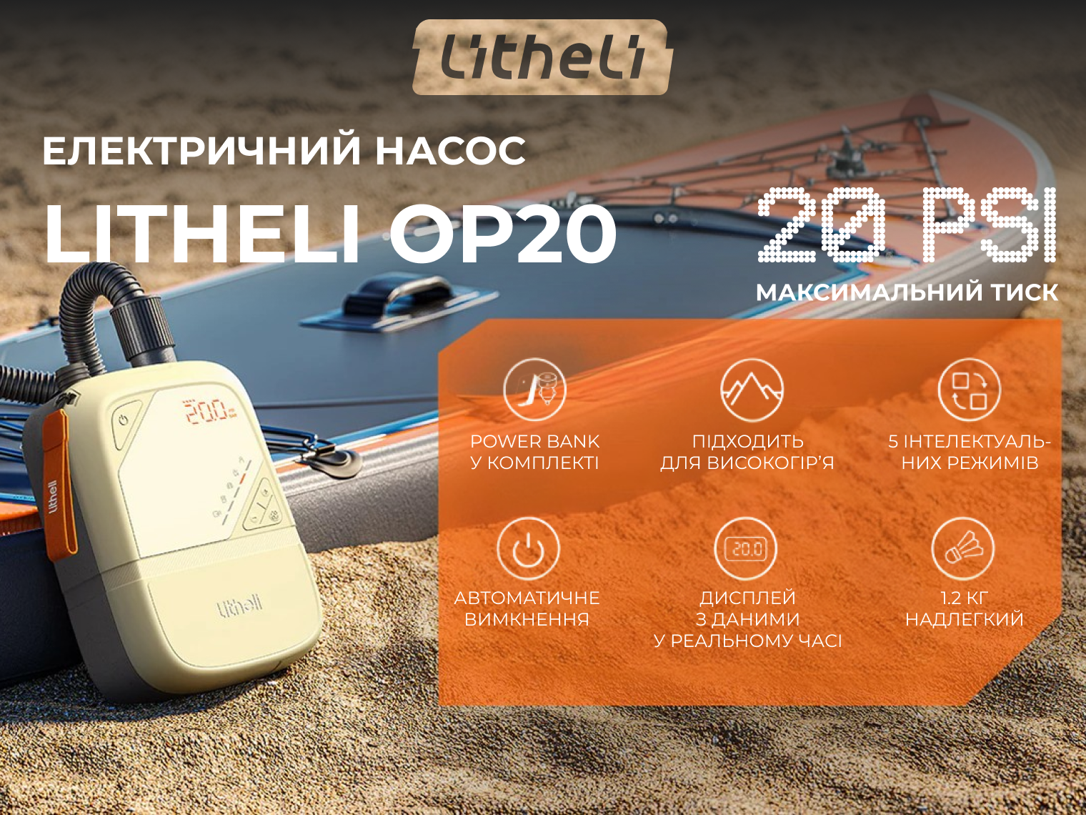 Опис портативного кемпінгового насоса Litheli OP20, живлення від павербанку (УМБ Litheli Power Bank 12500 mAh, 45 W, 2,5 А в комплекті)