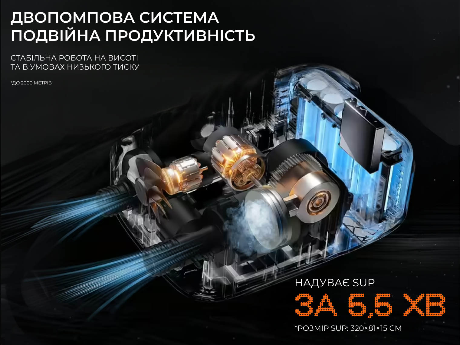 - функціональний насос 2 в 1 з можливістю роботи на надування та здування;