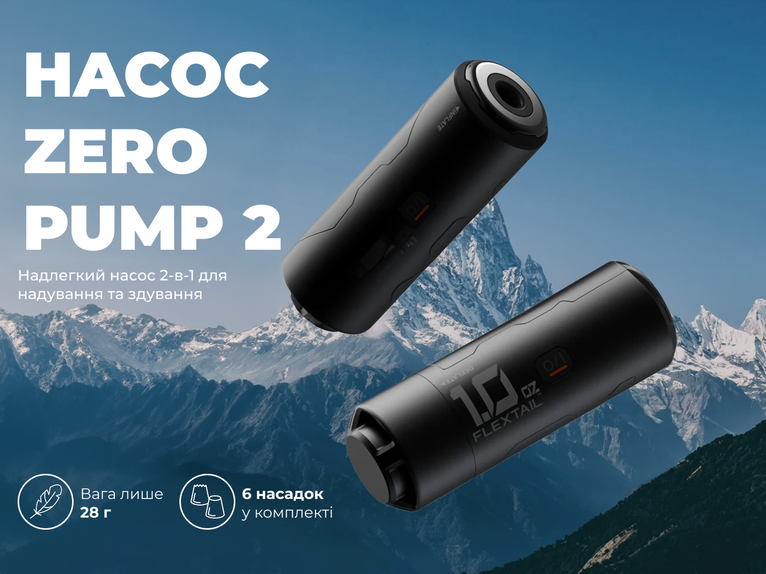 Zero Pump 2 — це надлегкий інструмент для туристів та альпіністів, який замінює громіздкі ручні насоси. Завдяки компактному корпусу пристрій займає не більше місця, ніж батарейка формату АА, і легко поміщається в кишеню чи клапан рюкзака.