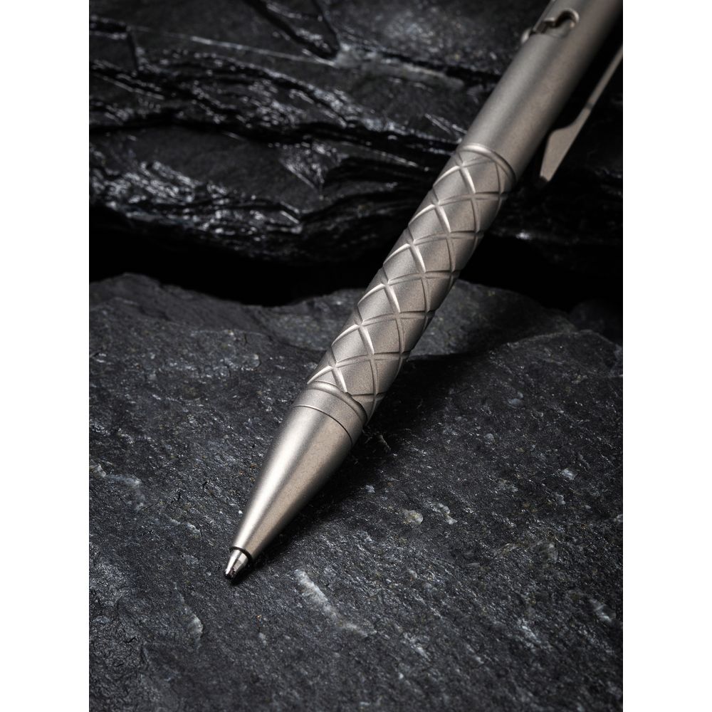 Розміри ручки такі: довжина становить 127.4 мм, діаметр корпусу — 9.7 мм, діаметр спінера — 14.3 мм. Фрезерована поверхня металу забезпечує міцне утримання, а титанова кліпса дозволяє фіксувати ручку на одязі та носити її з собою щодня.