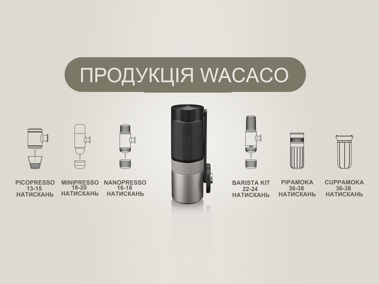 - Еспресо (не Wacaco) — можна орієнтуватися на помел, рекомендований для Nanopresso.