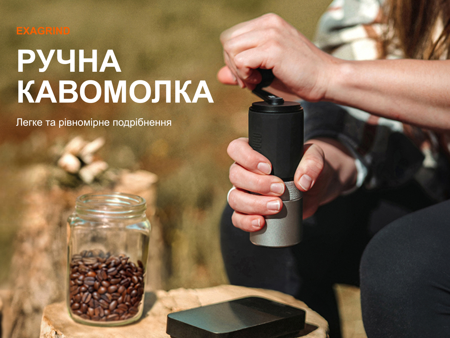 - кавомолка Exagrind для ручного помелу кавових зерен;