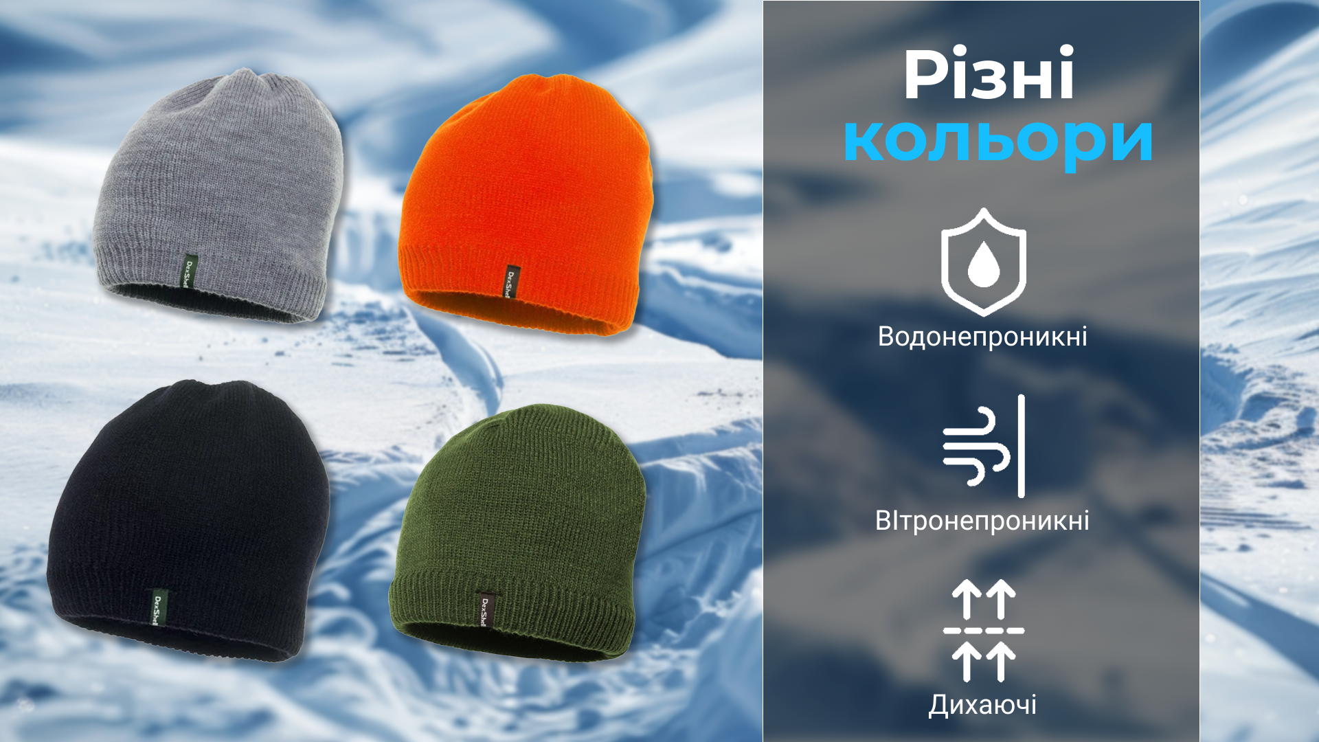—Зовнішній акриловий шар робить шапку DexShell легкої, стійким до зношування, а також допомагає зберігати форму.