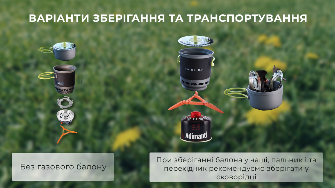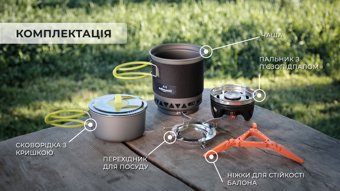Система приготування їжі оптимальна для використання у туризмі та активному відпочинку. У наборі представлені: