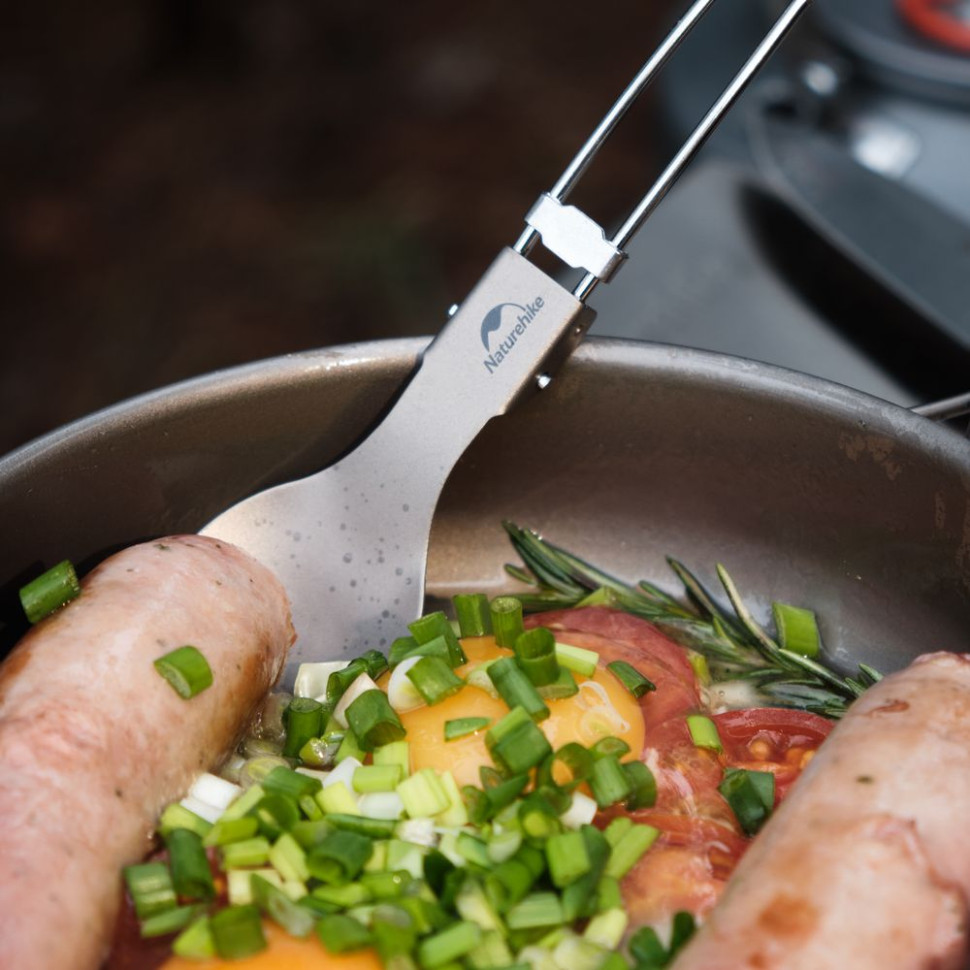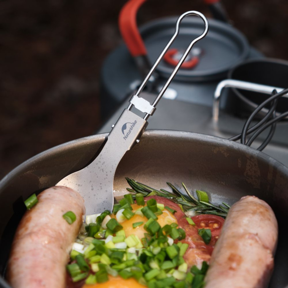 Опис титанової складаної ложко-виделки Naturehike NH19C001-J сірої з мішечком: